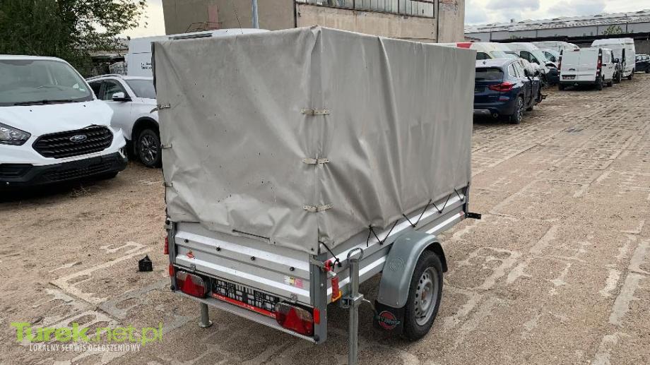 przyczepka jest z plandeką oraz z tylnymi podpórkami do 750 kg, z 2020r. wymiary 115x210