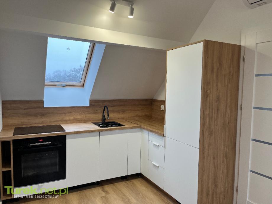 Do wynajęcia nowoczesne mieszkanie na poddaszu budynku jednorodzinnym przy ul. Kaliskiej 82 w Turku. Mieszkanie składa się z salonu z aneksem kuchennym, oddzielnego pokoju oraz łazienki. Cały budynek jest po generalnym remoncie.