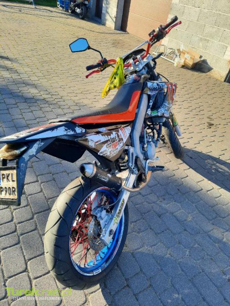 Sprzedam Derbi Sende na AM rok 2007, świeżo po remoncie zestaw cylinder i tłok malinka 90 2 mth przejechane na nim wydech dyfuzor dolny hebo racing gaźnik dellorto 21mm nowa dźwignia zmiany biegów opony i felgi supermoto bierznik dobry elektryka sprawna z tyłu lampa led z kierunkami wbudowanymi w lampe z chłodnicy nie leci lagi nie ciekną kierownica lekko skrzywiona filtr powietrze czyszczony regularnie dorzucam jeszcze sporo części w zestawie: sprawny zapłon, cewka zapłonowa zębatka orginalna przód 13z teraz jest 16 zębów sportowy filtr powietrza mk i wiele innych sprzedaje z powodu przesiadki na większy sprzęt. motor ogólnie sprawny gotowy do jazdy zarejstrowany na AM cena jaka mnie interesuje to 5450zł