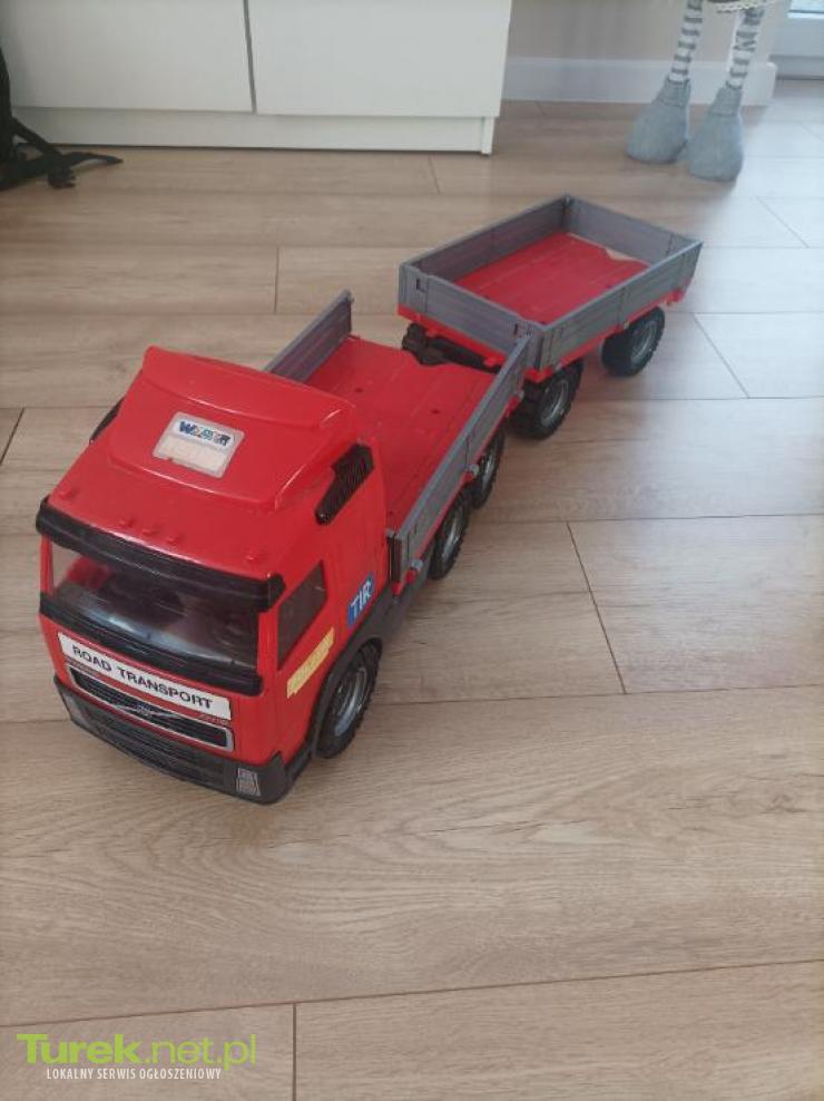 Ciężarówka z przyczepą , przyczepa na skrętnej przedniej osi. Brak zamykania burty przy ciężarówce. Z solidnego plastiku z Wadera z Polesia