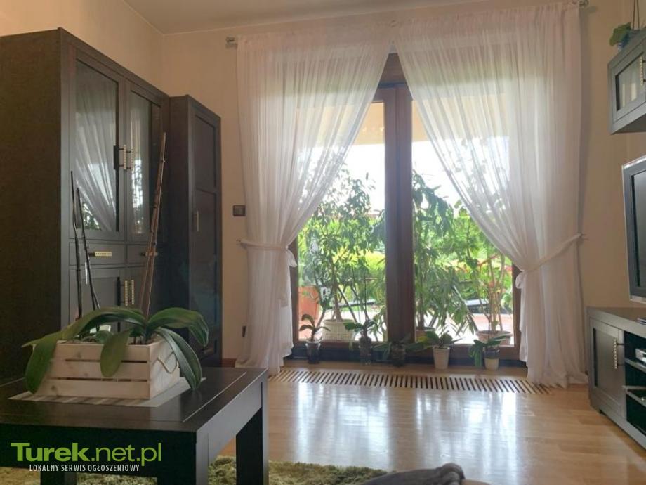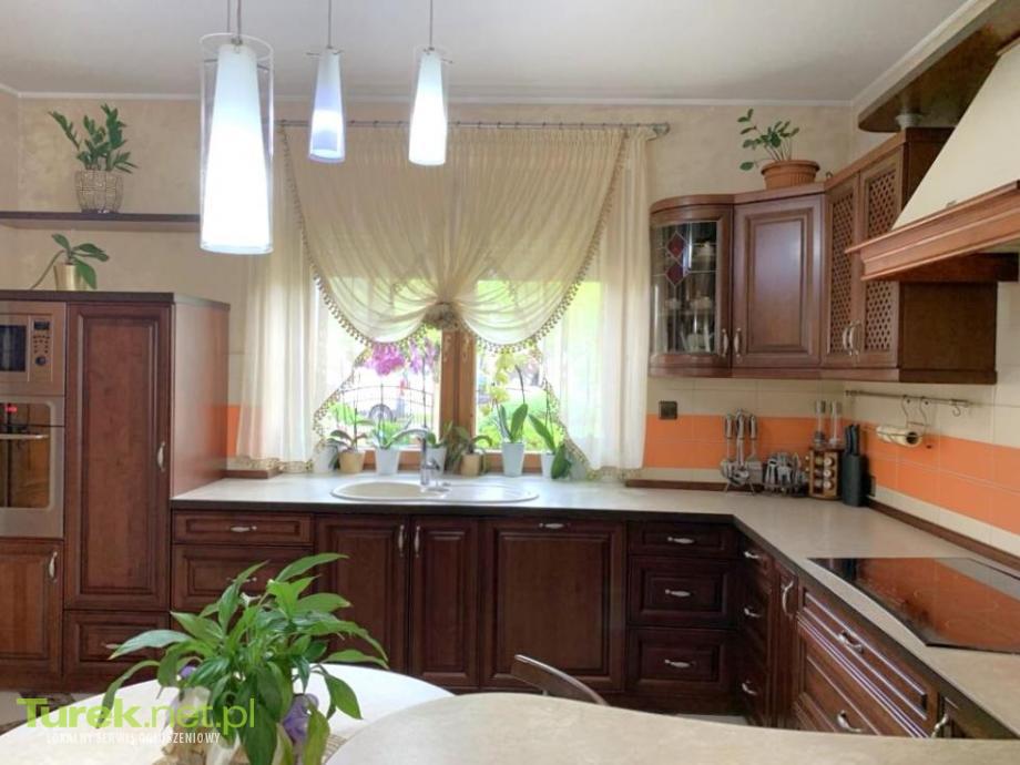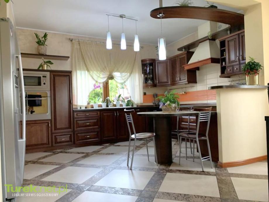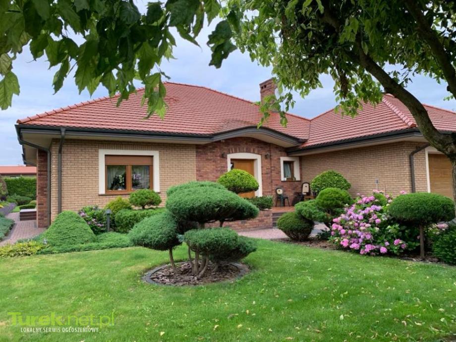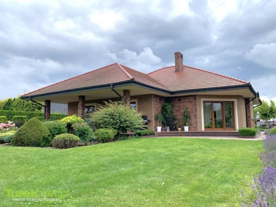 Mała, kameralna inwestycja luksusowy domek parterowy, wolnostojący na pięknie zagospodarowanej 16-arowej działce. Dom w bryle z garażem został zbudowany wg indywidualnego projektu z cegły w 2007 roku przy ulicy Spokojnej w Turku. Zgodnie z nazwą ulicy jest ona nadzwyczaj spokojna, asfaltowa ze znakiem ,,ślepa" D-4a. Nowoczesny, funkcjonalny wykonany i wyposażony z wysokiej klasy materiałów gotowy do zamieszkania bez dodatkowych nakładów. Na pow użytkową 150m2 składa się otwarta (wyposażona w sprzęt agd) kuchnia z salonem oraz 3 pokoje, 2 łazienki, przestrzenny korytarz, spiżarnia, pralnia, garderoba. Ściany gładź szpachlowa, podłogi - zdobiona terakota, w pokojach parkiet. Dach 4 spadowy pokryty dachówką - karpiówką a rynny miedziane. Woda i kanaliza z sieci miejskiej. Ogrzewanie podłogowe i centralne w pokojach - gaz ziemny. Nowoczesny , dobrze doświetlony, dodatkowo ocieplony wełna+ cegła ( belgijska) ręcznie formowana domek - perełka usytuowany na zagospodarowanej działce, na którą również jest wyjście z tarasu. Cały teren działki obsadzony jest pięknymi zadbanymi krzewami , drzewami i kwiatostanem . Ogród i otoczenie domu jest pięknie wkomponowane w istniejące warunki terenowe. Wszystkie chodniki, ścieżki w obrębie działki,(wjazd do garażu) podwórko z zewnątrz budynku wykonane są z kostki granitowej z wielokolorowymi wzorami. Atutem nieruchomości jest cicha i spokojna okolica, bliskość terenów zielonych oraz bardzo dobry i szybki dojazd, położenie w cichej uliczce.