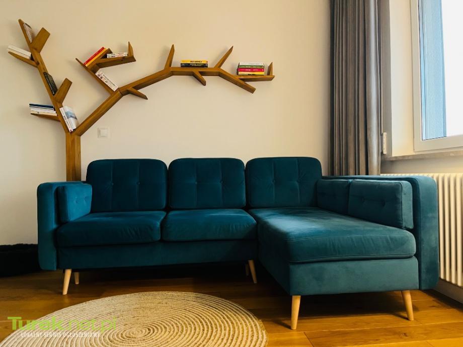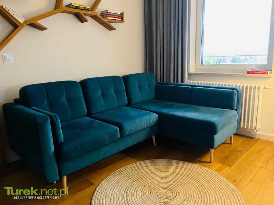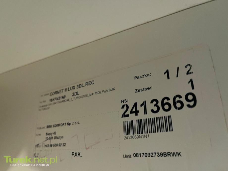 Narożnik z funkcją spania marki Black Red White . Model Cornet II Lux . Kolor morski . Lekki , wytrzymały , estetyczny . Stan jak nowy . Funkcja spania - sprawny mechanizm rozkładania . Pojemnik na pościel . Wymiary : szerokość 223 cm , wysokość 90 cm , głębokość 170 cm . Odbiór własny mebla - Turek - blok z windą . Zapraszam