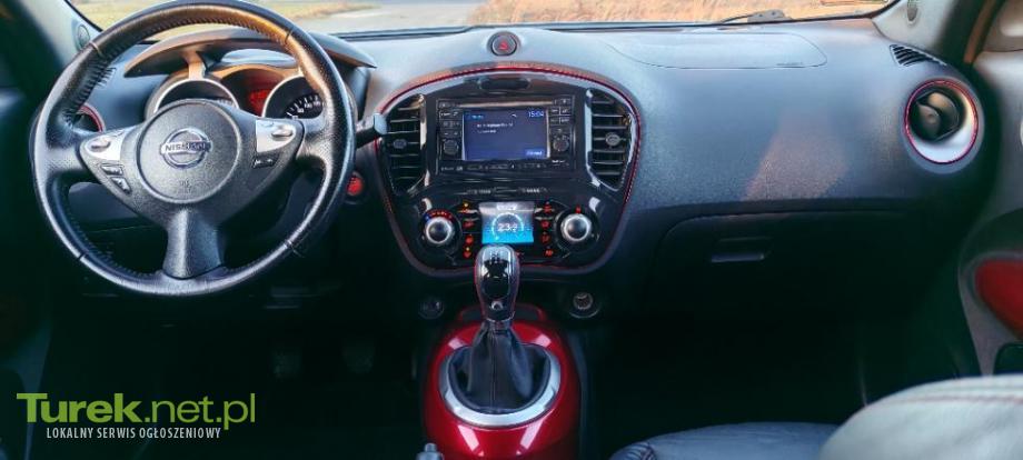 Sprzedam Nissan Juke Tekna 2011r wyposażony w najbardziej chwalony za bezawaryjność zwykły, bez turbiny, bardzo żwawy i zaskakująco ekonomiczny silnik benzynowy 1.6 117KM z ekonomiczną manualną skrzynią, z bardzo bogatym wyposażeniem z kamerą cofania, w pięknym lakierze - czarnej perle, bezkluczykowym otwieraniem, odpalaniem przyciskiem, czujnikiem deszczu, alu felgami, automatycznie składanymi lusterkami, skórzaną tapicerką, podgrzewanymi fotelami, przyciemnianymi szybami. Posiada 3 tryby jazdy (sport, normal, eco), ABS, ESP, czujnik zmierzchu, komputer pokładowy, nawigację dotykową z kompletem map, tempomat, bluetooth, skórzaną i multimedialna kierownicę z wentylowanej skóry, klimatronic, halogeny elektrycznie sterowane szyby.