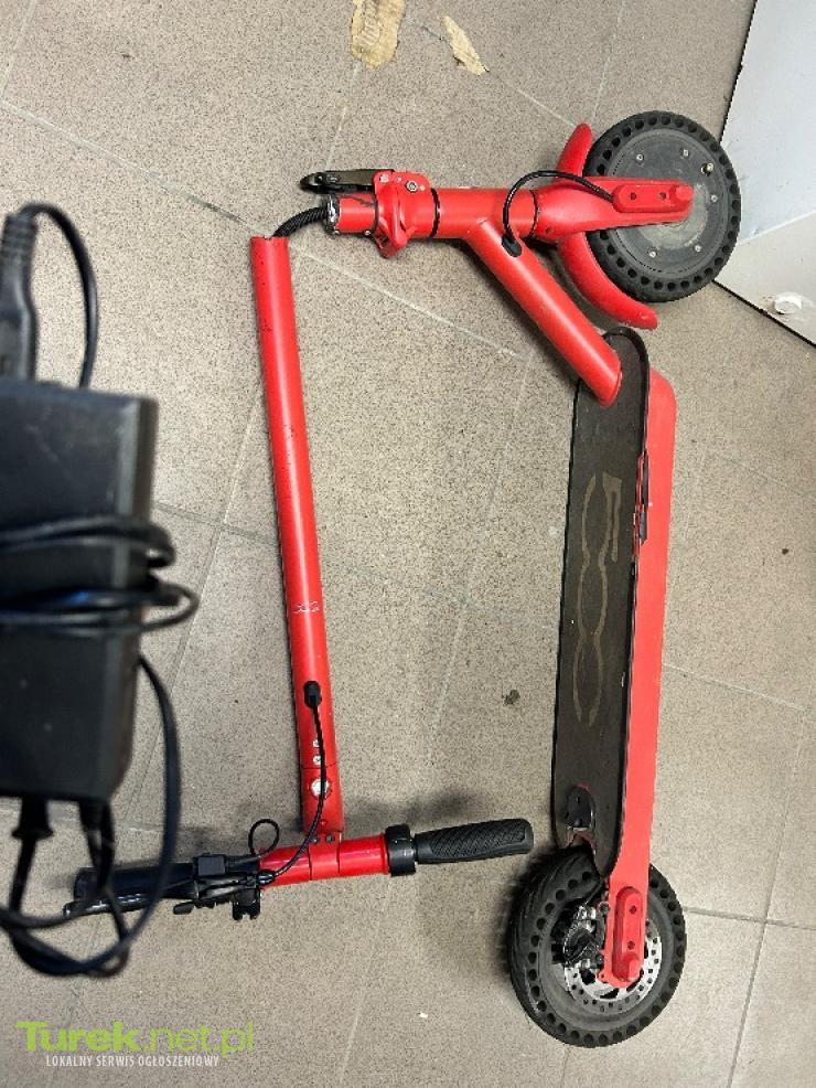 Sprzedam hulajnogę widoczną na foto. Uszkodzona złamana kierownica wystarczy pospawać i gra hulajnoga sprawna odnosnie baterii do 20 km jazdy na jednym ładowaniu więcej info priv