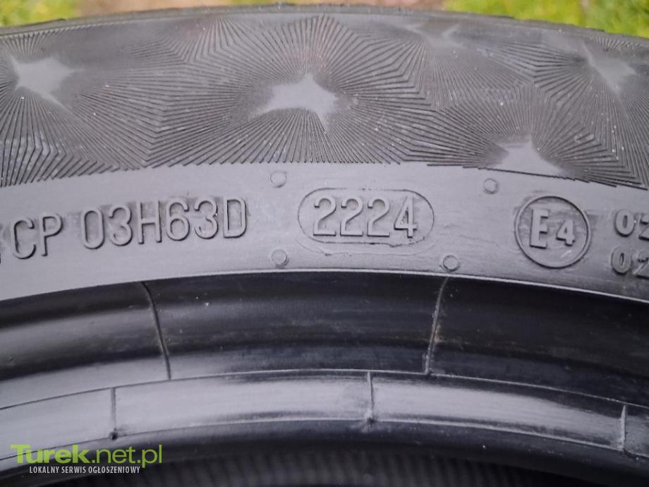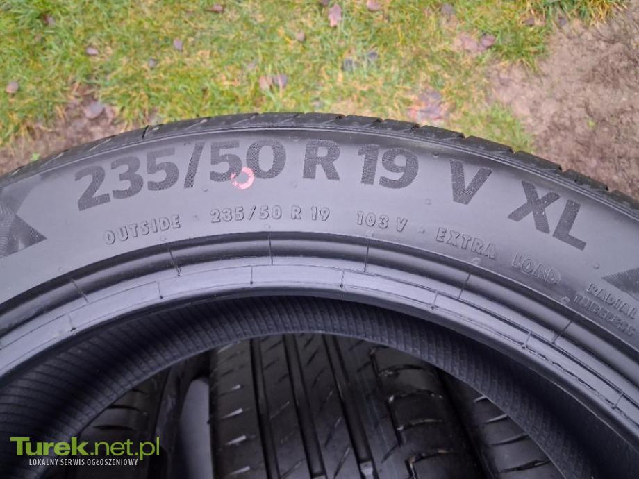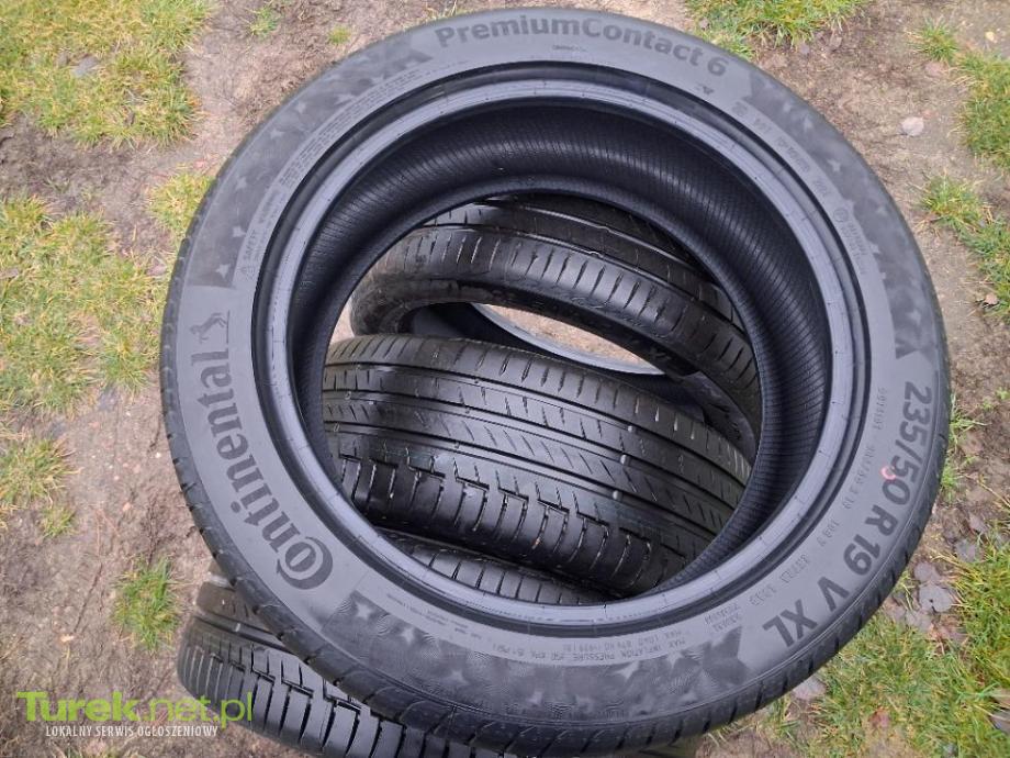 Nowe opony Continental 235/50/19 rocznik 2024. Cena 1200zł/komplet 4szt. Sprzedam komplet opon letnich firmy Continental PremiumContact6 w rozmiarze 235/50/19. Rocznik 2024. Opony zdemontowane z nowego auta. Bieżnik jak w nowej oponie. Widoczne markery. Odbiór osobisty 62-700 Turek.