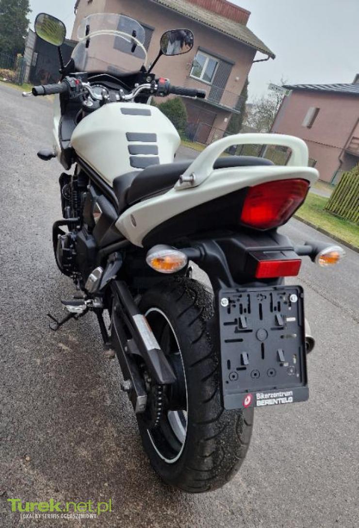 Witam, sprzedam piękny motocykl Suzuki Bandit 650, w białej perle i bardzo dobrym stanie technicznym i wizualnym, wyposażony w ABS, wydech STORM, gmole, gniazdo zapalniczki 12V w schowku, opony i napęd w bardzo dobrym stanie, nowy akumulator. Motocykl w oryginalnym lakierze, zarówno silnik jak i skrzynia biegów działają bez zarzutu Motocykl sprowadzony od prywatnego właściciela z Niemiec Dla zainteresowanych mogę podesłać dokładniejsze zdjęcia lub nagranie video Komplet dokumentów do rejestracji Motocykl serwisowany, dostępna książka serwisowa oraz wydruk z ostatniego przeglądu TUV Wystawiam fakturę VAT- marża; kupujący zwolniony z opłaty skarbowej 2%. Koszt rejestracji 214 zł Możliwość transportu W przypadku pytań proszę o kontakt Polecam