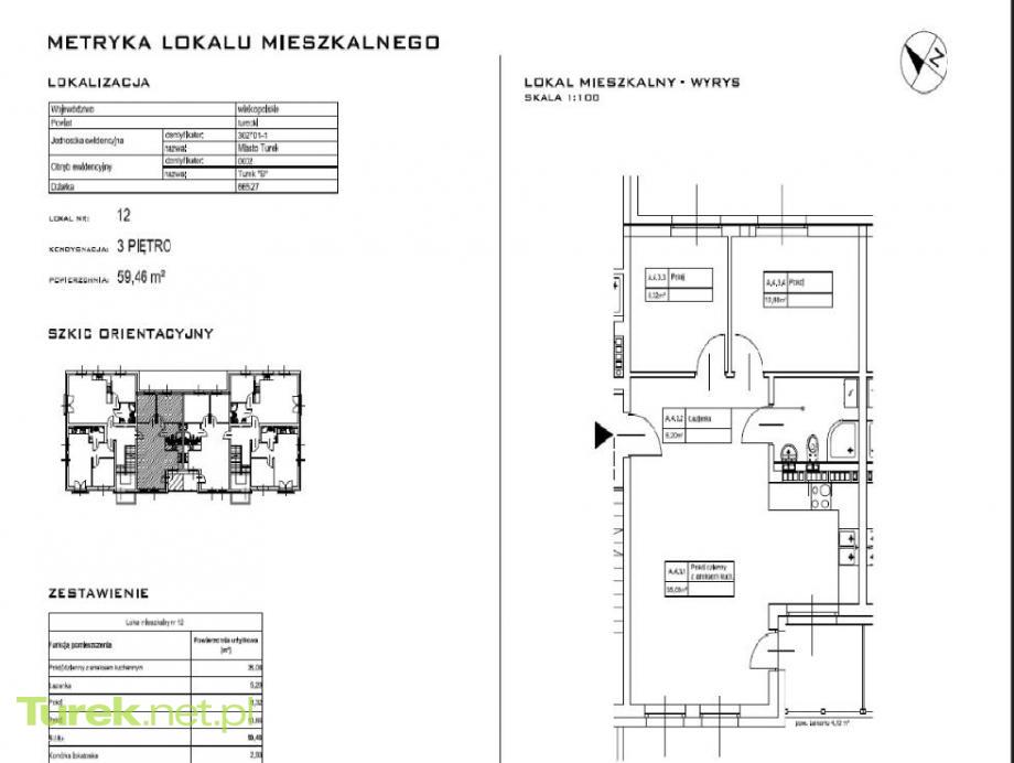 3) mieszkanie 59,23 m2 - III piętro - 7000 zł/m2