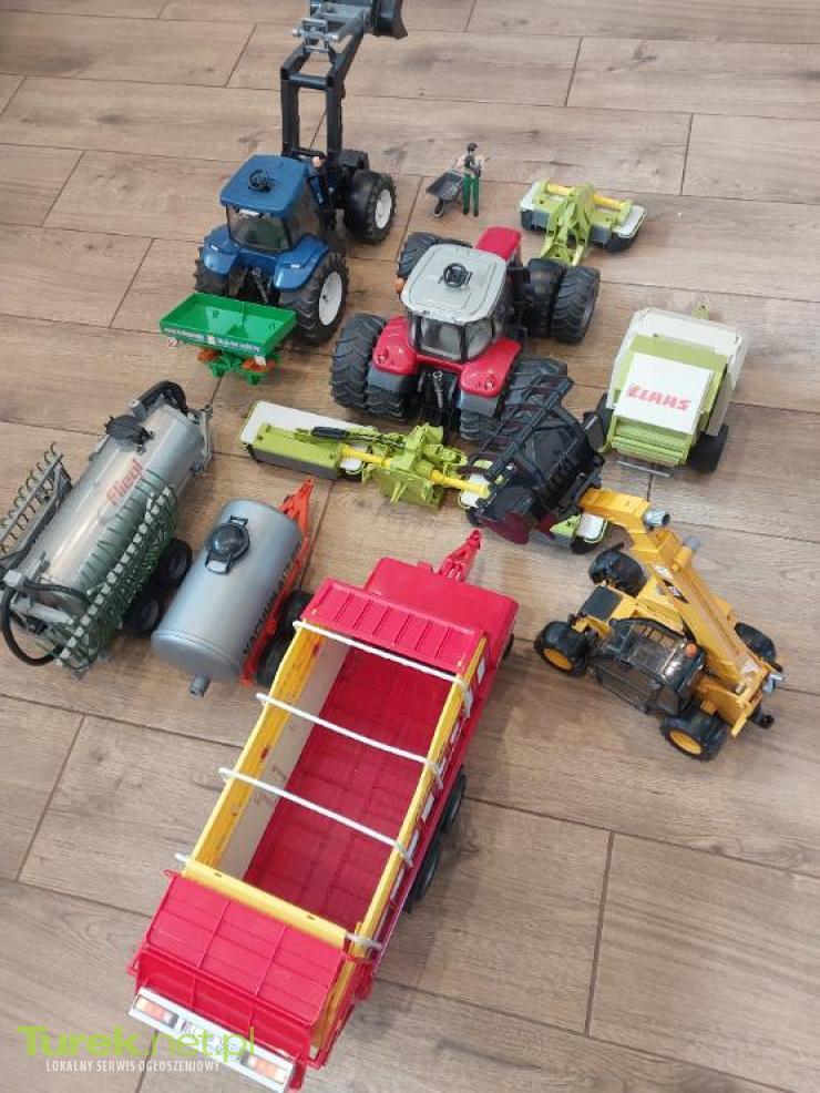 Wszystkie zabawki sprawne oprócz traktora New Holland w którymnie działa kierowanie górną kierownicą i brakuje drzwi. Mogę sprzedać pojedynczo. Ludzik z piłą, widłami i taczką 30 zł Rozsiewacz Amazone 20 zł Przyczepa samozbierająca 100 zł Traktor Massey Ferguson z kołami bliźniaczymi 100 zł Traktor New Holland z turem 50 zł Ładowarka teleskopowa cat 70 zł Kosiarka claas 70 zł Prasa class z Snopkiem 50 zł Beczka Mała 50 zł Beczka asenizacyjnya duża 70 zł Do odbioru w miejscowości Żdżenice