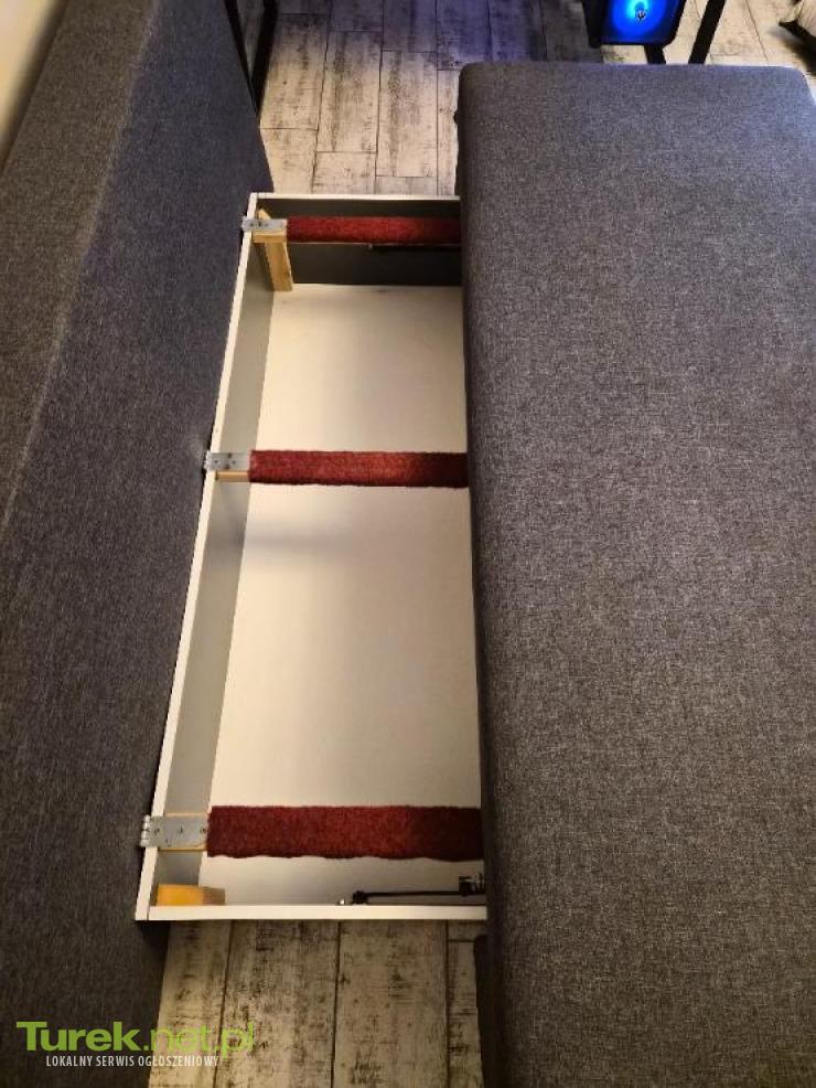 Sprzedam kanapę, powierzchnia spania 195 na 145 cm,głębokość 95 cm.Pojemnik na posciel,rozkładanie typu automat DL. Widoczne slady użytkowania,stan dobry.