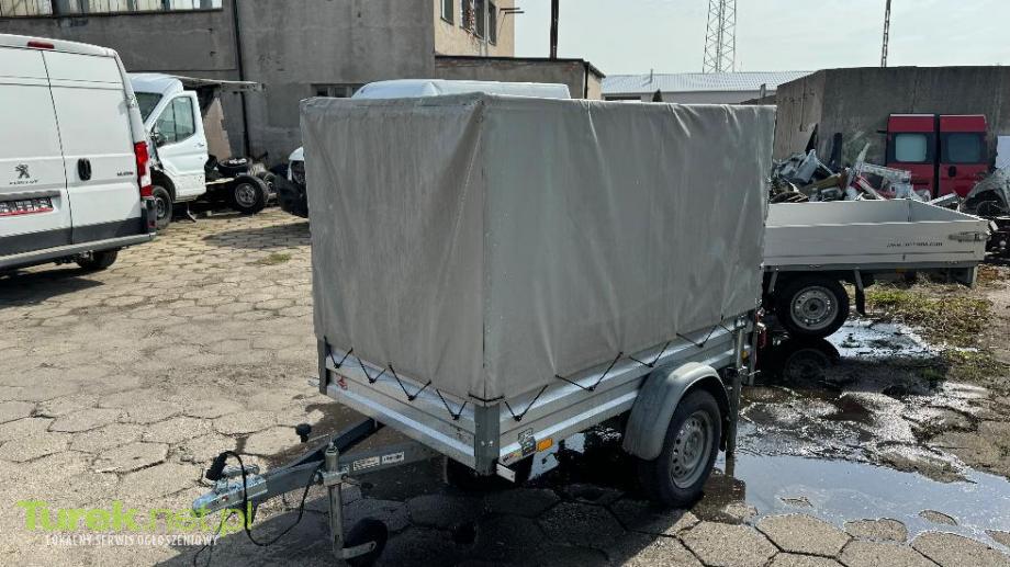 przyczepka jest z plandeką oraz z tylnymi podpórkami do 750 kg, z 2020r. wymiary 115x210