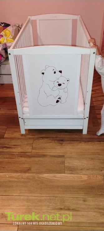 Sprzedam łóżeczko dziecięce 120x60 z szufladą i materacem gryka kokos do tego dorzucam w gratisie pościel z poduszką, prześcieradło kocyki to co na zdjęciach.