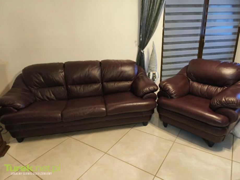 Sprzedam skórzaną rozkładaną kanapę z fotelem