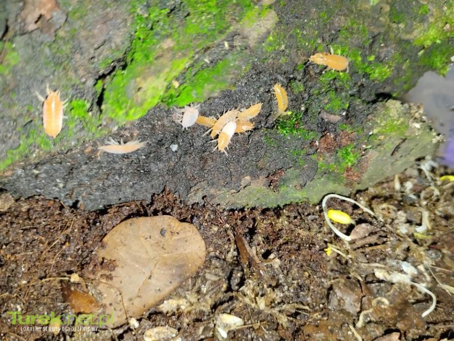 Sprzedam widoczne na zdjęciu ślimaki afrykańskie albino razem z pojemnikiem, torfem, dwoma odmianami isopodów,