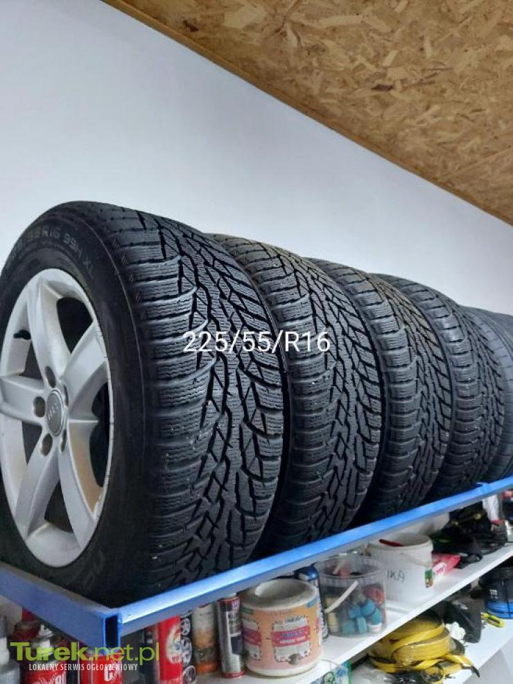 Sprzedam komplet opon zimowych na alusach w rozmiarze 225/55 R 16 , opony w stanie bardzo dobrym przejechane max 5 tys km. felgi proste w dobrym stanie, zostały po sprzedaży audi Tel.786342463