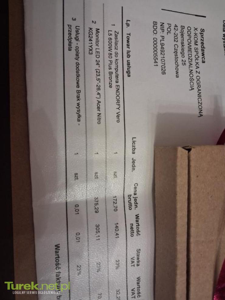 Mam do sprzedania zasilacz do komputera. Nowy, nieużywany. Posiadam fakturę.