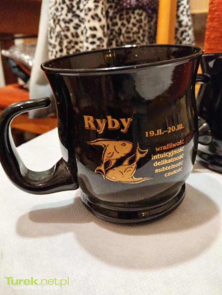 Sprzedam nowe że szkła czarnego duże kubki że znakami zodiaku Ryby Wodnik Bliźnięta. Każdy kubek w cenie 20zł. Ciekawy upominek na dzień dziadka i babci. Zdjęcie w załączeniu.