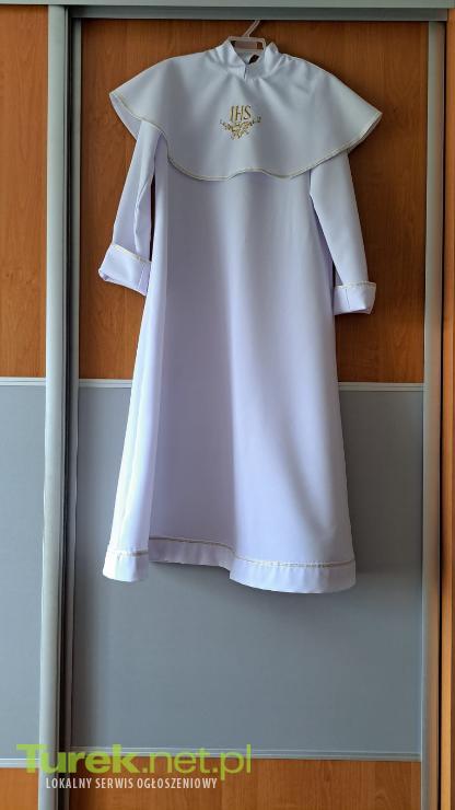 Sprzedam albę komunijną na dziewczynkę w rozmiarze 134, z możliwością wydłużenia, gdyż była podwinięta oraz buty w rozmiarze 31.