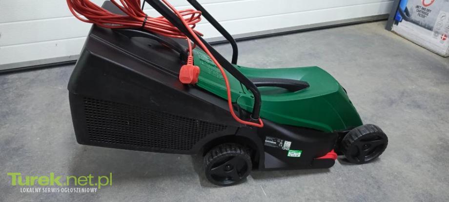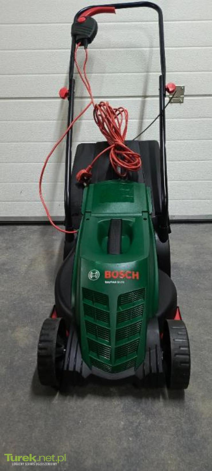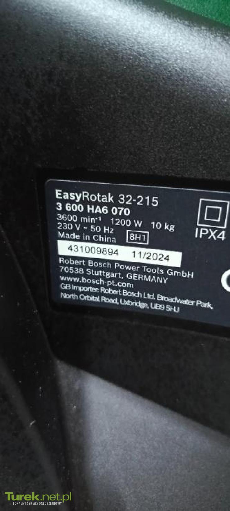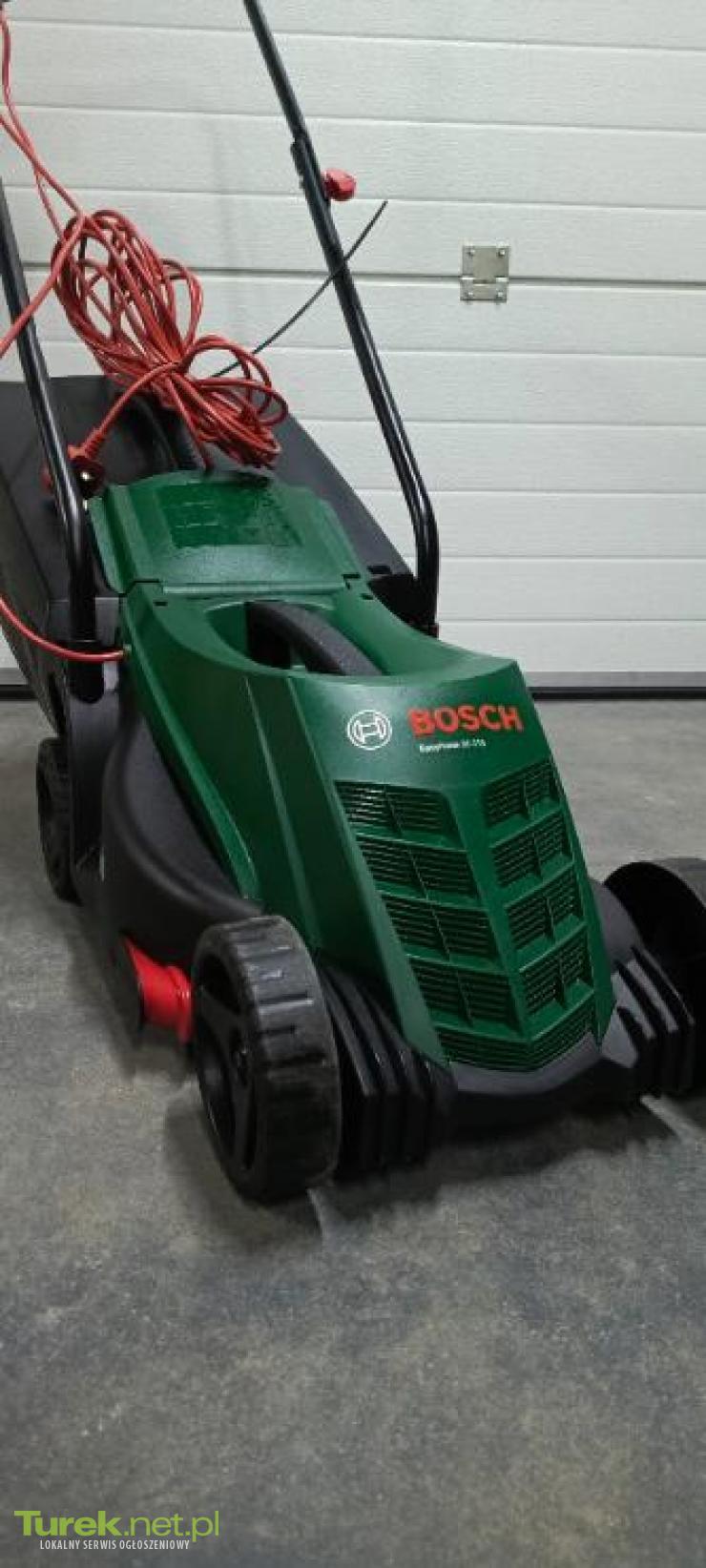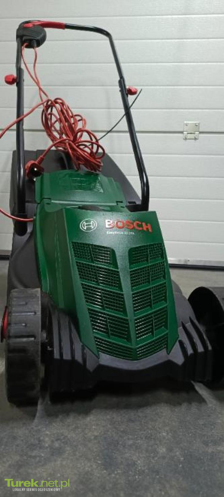 Przedmiotem sprzedaży jest kosiarka elektryczna Bosch easy rotak. Sprzęt w idealnym stanie . Możliwość wysyłki za pobraniem lub odbiór osobisty. Kosiarka elektryczna BOSCH EasyRotak 32-215 Dane techniczne: Moc silnika: 1200 W Szerokość cięcia: 32 cm Regulacja wysokości koszenia: 3-stopniowa (25 mm, 40 mm, 65 mm) Pojemność kosza na trawę: 31 litrów Technologia Powerdrive: Tak (zapewnia stałą moc cięcia, nawet w gęstej trawie) System Rasenkamm: Tak (umożliwia dokładne koszenie przy krawędziach) Rodzaj napędu: Ręczny Waga: 7,8 kg Rodzaj zasilania: Elektryczne (przewodowe) Ergonomiczny uchwyt: Tak (składany dla łatwiejszego przechowywania) Zalecana powierzchnia koszenia: Do 300 m² Poziom hałasu: 79 dB(A)