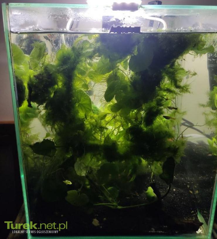 Sprzedam akwarium z życiem, ryby oraz krewetki, łącznie ok 100 szt, gęsta roślinność, tylko karmić.