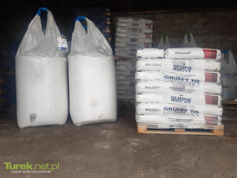 - nawozy sztuczne, m. in. saletra, saletrzak, mocznik, polifoska 6 i 8, polidap, salmag, lubofoska, lubofos, sól potasowa, wapno granulowane i pyliste, rsm, kizeryt i kainit,