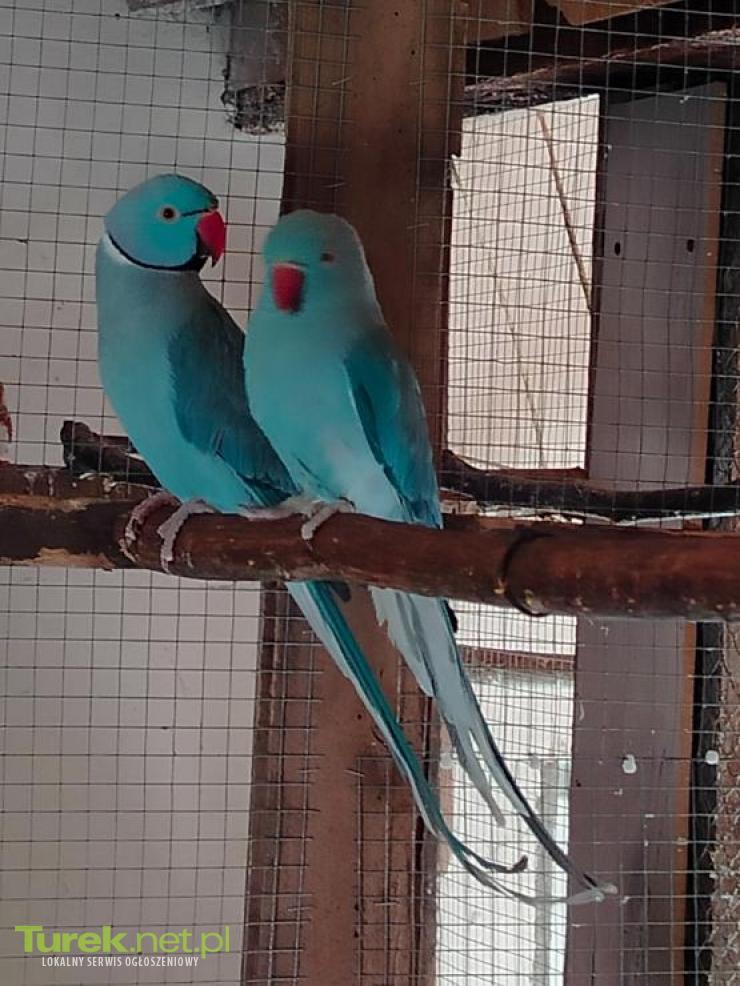 Sprzedam aleksandrety niebieskie para lęgowa z 2021 r, cena 950 zł, dodam domek lęgowy zmniejszam hodowlę, więcej informacji przez telefon 693855864
