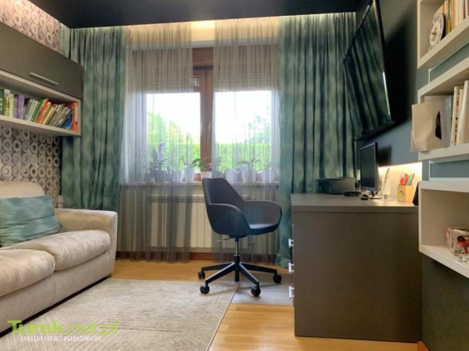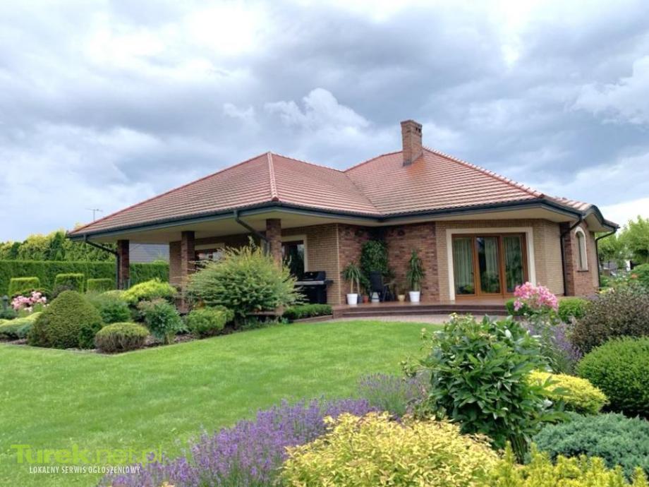 Mała, kameralna inwestycja luksusowy domek parterowy, wolnostojący na pięknie zagospodarowanej 16-arowej działce. Dom w bryle z garażem został zbudowany wg indywidualnego projektu z cegły w 2007 roku przy ulicy Spokojnej w Turku. Zgodnie z nazwą ulicy jest ona nadzwyczaj spokojna, asfaltowa ze znakiem ,,ślepa" D-4a. Nowoczesny, funkcjonalny wykonany i wyposażony z wysokiej klasy materiałów gotowy do zamieszkania bez dodatkowych nakładów. Na pow użytkową 150m2 składa się otwarta (wyposażona w sprzęt agd) kuchnia z salonem oraz 3 pokoje, 2 łazienki, przestrzenny korytarz, spiżarnia, pralnia, garderoba. Ściany gładź szpachlowa, podłogi - zdobiona terakota, w pokojach parkiet. Dach 4 spadowy pokryty dachówką - karpiówką a rynny miedziane. Woda i kanaliza z sieci miejskiej. Ogrzewanie podłogowe i centralne w pokojach - gaz ziemny. Nowoczesny , dobrze doświetlony, dodatkowo ocieplony wełna+ cegła ( belgijska) ręcznie formowana domek - perełka usytuowany na zagospodarowanej działce, na którą również jest wyjście z tarasu. Cały teren działki obsadzony jest pięknymi zadbanymi krzewami , drzewami i kwiatostanem . Ogród i otoczenie domu jest pięknie wkomponowane w istniejące warunki terenowe. Wszystkie chodniki, ścieżki w obrębie działki,(wjazd do garażu) podwórko z zewnątrz budynku wykonane są z kostki granitowej z wielokolorowymi wzorami. Atutem nieruchomości jest cicha i spokojna okolica, bliskość terenów zielonych oraz bardzo dobry i szybki dojazd, położenie w cichej uliczce.