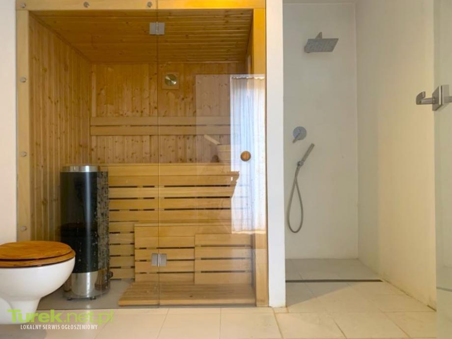 Na sprzedaż dom pow całkowitej 180m2 usytuowany na 3,6arowej działce przy ul. Browarnej w Turku. Składa się z 3 kondygnacji, piwnicy w niej garaż, parter i piętro ( budynek piętrowy). Wnętrze domu charakteryzuje styl loftowy ( duża, wysoka i otwarta przestrzeń). Wnętrze domu tworzą 3 pokoje, 2 kuchnie ( przestrzeń otwarta), 2 łazienki, sauna, garderoba. Kapitalny remont prowadzony był w 2018 roku wymienione tynki, elektryka i hydraulika. Zewnętrze drzwi szklane, podłogi klepka drewniana i terakota, okna pcv z 2018 roku . Ogrzewanie domu podłogowe - miejskie. Woda i kanaliza również miejska. Dom z wyjątkowym/ pomysłowym wnętrzem budowany był w 1989r z cegły dodatkowo ocieplony. Dach pokryty papą.