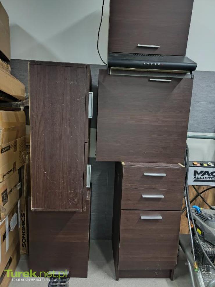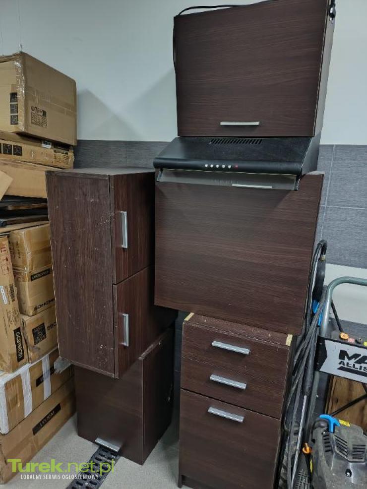 Sprzedam szafki kuchenne. Cztery wiszące w tym jedna z okapem i stojacy słupek z szufladami