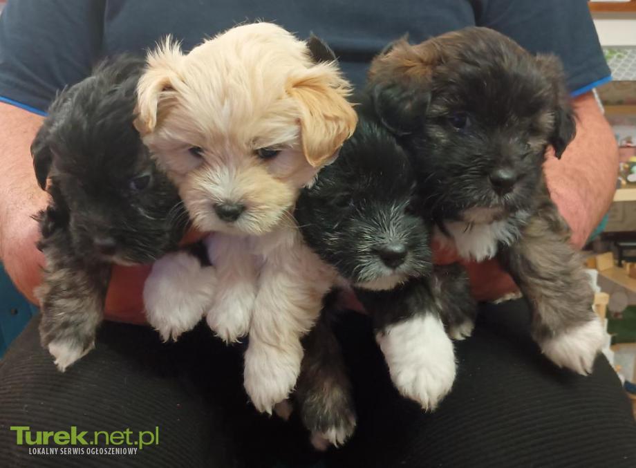 Mam do oddania 4 urocze szczeniaki. Od lewej strony 2 suczki od prawej 2 pieski. Matką piesków jest suczka Malshi a tatą kundelek. Psiaki przebywają w warunkach domowych. Pieski będą małe i odbioru pod koniec przyszłego tygodnia. Więcej informacji udzielę telefonicznie.