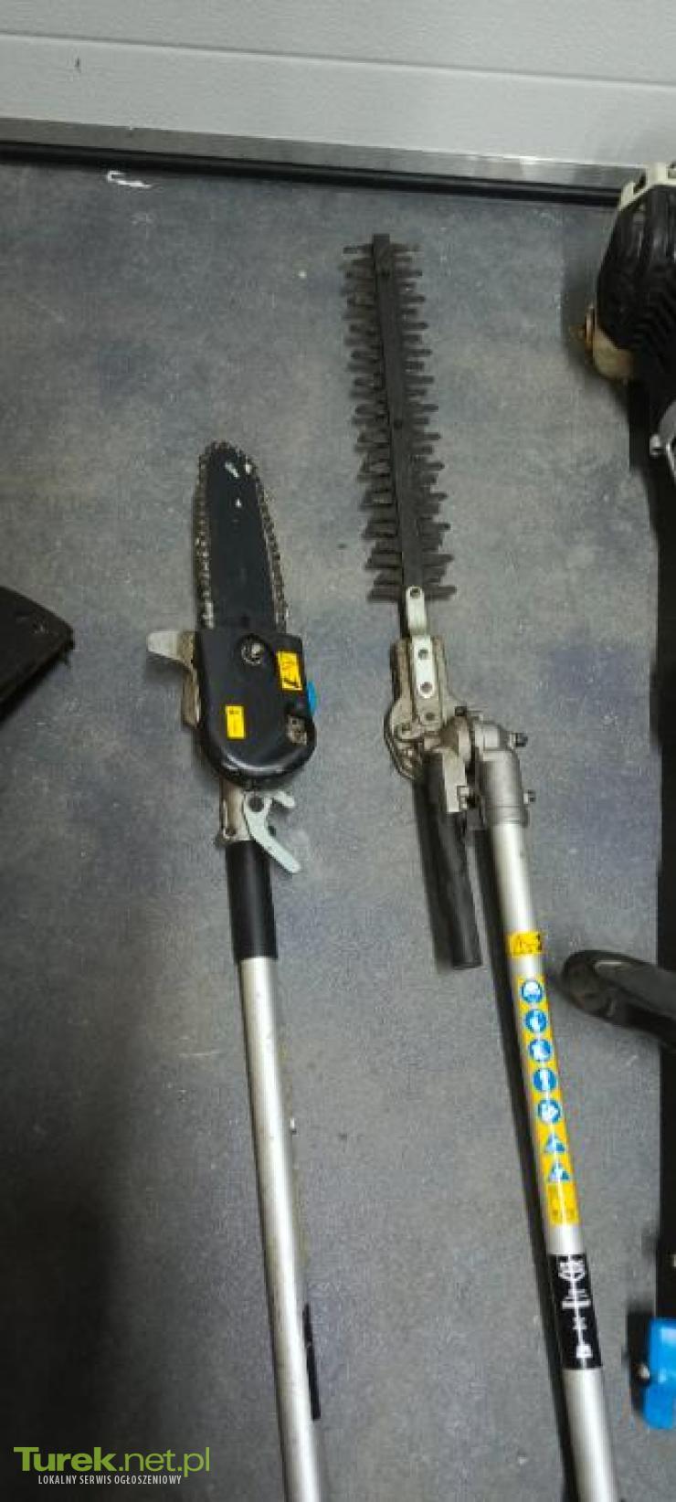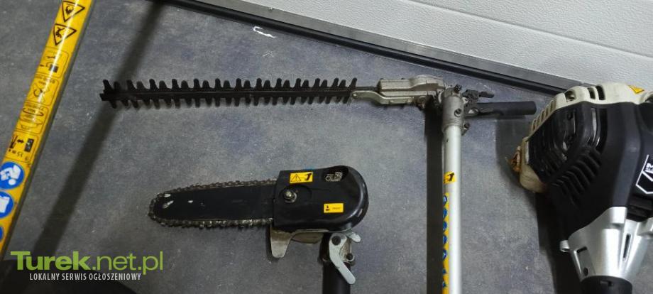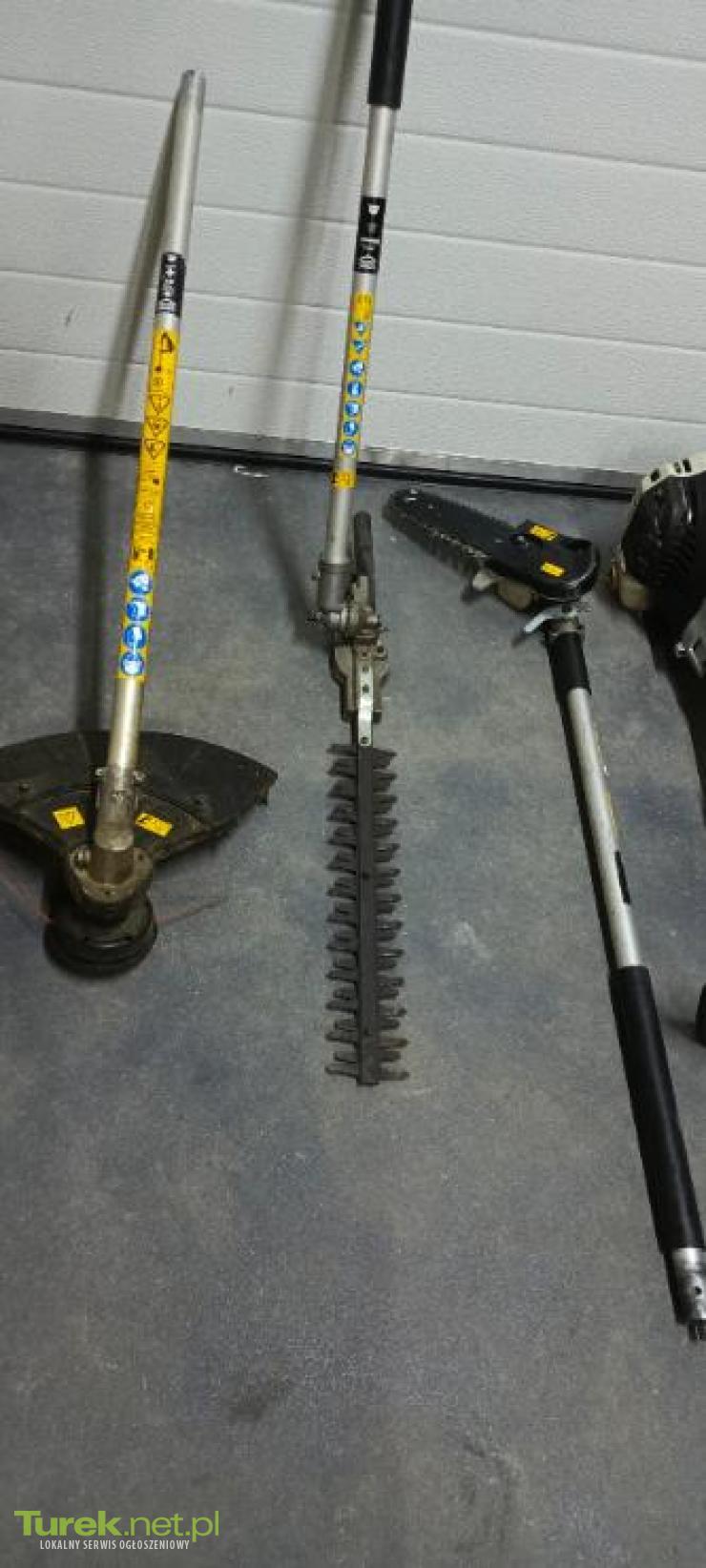 Spalinowe urządzenie wielofunkcyjne . W zestawie podkaszarka, nożyce do żywopłotu i piła na wysiegniku.