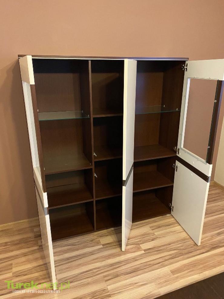 Sprzedam komplet mebli widocznych na zdjęciu • stół rozkładany + 8 krzeseł • witryna • meblościanka RTV • 2 wysokie szafki • stolik kawowy Meble są w bardzo dobrym stanie Idealnie sprawdzą się w salonie lub jadalni. Wymiary: • Stół rozkładany: 100 × 200 cm plus możliwość przedłużenia do 250 cm lub 300 cm • Witryna: wysokość 160 cm, szerokość 140 cm • Stolik RTV: wysokość 45 cm, szerokość 60 cm, długość 150 cm • 2 szafki: wysokość 200 cm, szerokość 50 cm, głębokość 40 cm • Stolik kawowy: długość 110 cm, szerokość 65 cm, wysokość 45 cm ???? Odbiór osobisty ???? Zainteresowanych zapraszam do kontaktu