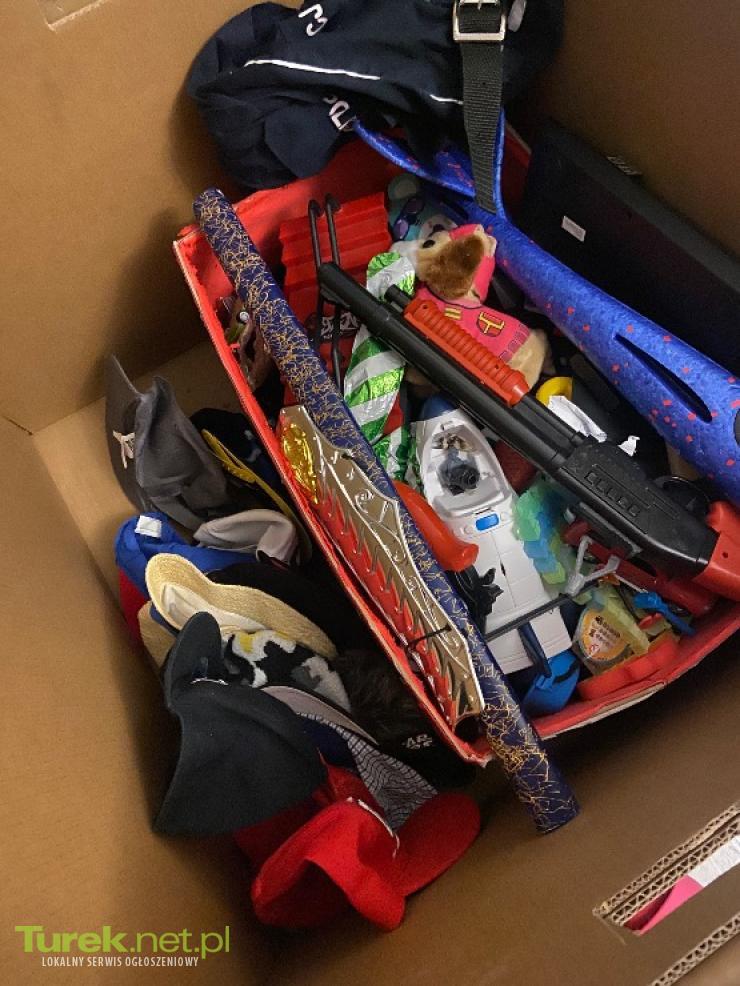 Sprzedam pełne pudło zabawek dla małego chłopca + strój policjanta,czapki. Odbiór Turek najlepiej dziś