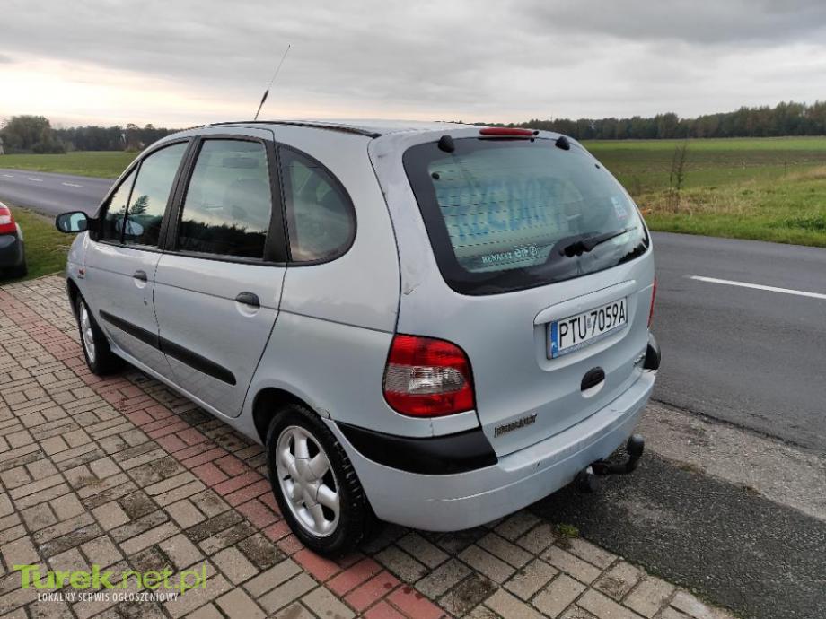 Sprzedam Renault Scenic I, poj 1,6 16V benzyna, 107KM, przebieg 166tys km. Auto w dobrym stanie technicznym, OC do 16. 05.2026, świeży przegląd techniczny - ważny do 16.10.2026 (hamuce i zawieszenie w dobrym stanie), 3 właściciel w kraju, karta pojazdu, 2 kluczyki, auto robi roczne przebiegi na poziomie 2 tyś km, więcej stoi niż jeździ. Auto pali na dotyk zimą jak i latem. Sprzęgło i skrzynia w dobrym stanie, nic nie stuka, nic nie puka. Od spodu auto zdrowe. Sprawny hak. Radio mp3. Dla chętnych dołączę oryginalne radio Renault (możliwość sterowanian z kierownicy). Z tylu 3 oddzielne fotele z możliwością złożenia lub całkowitego wyjęcia, co znacznie zwiększa przestrzeń bagazową. W ostatnim czasie wymienione: *kompletny rozrząd 05.2023 *Pasek osprzętu, rolki i napinacze 03.2023 *Akumulator z 02.2023 *Hamulce przód, tarcze + klocki 08.2024 *Pompa wspomagania układu kierowniczego 07.2025 To z plusów, a z minusów: *Nie sprawna klimatyzacja *Ogniska korozji na tylnych nadkolach *Lakier się łuszczy