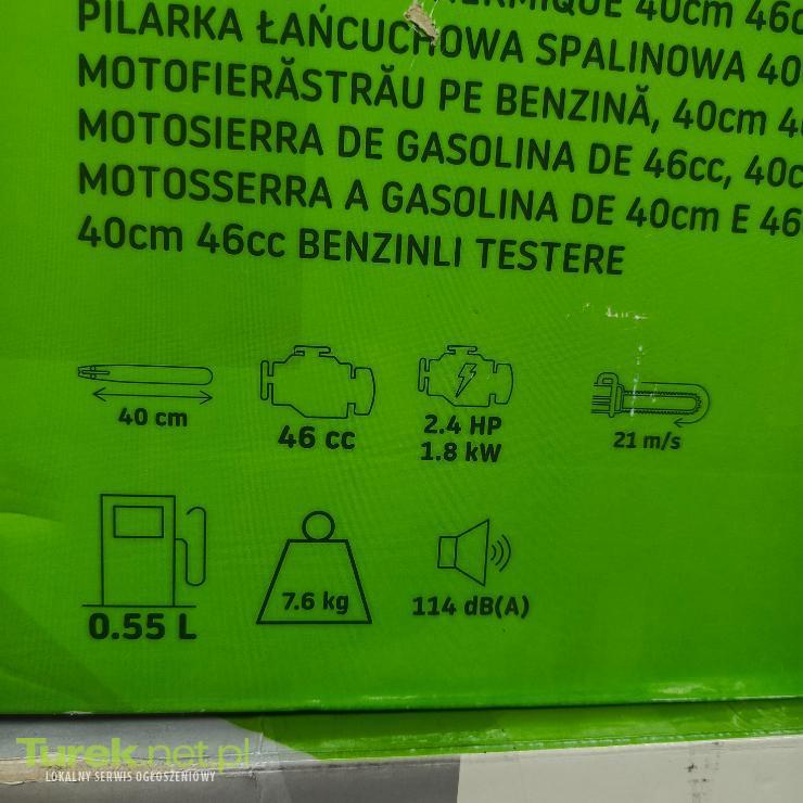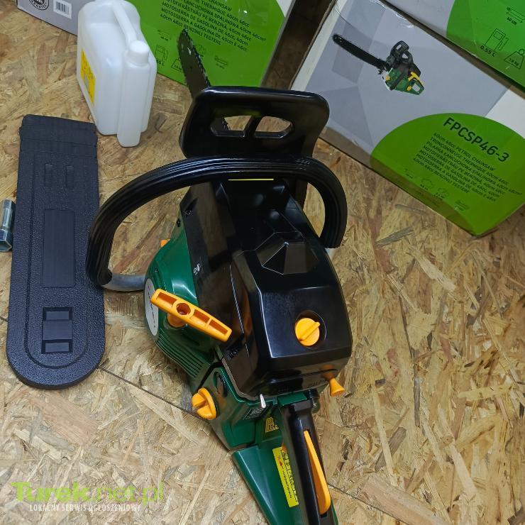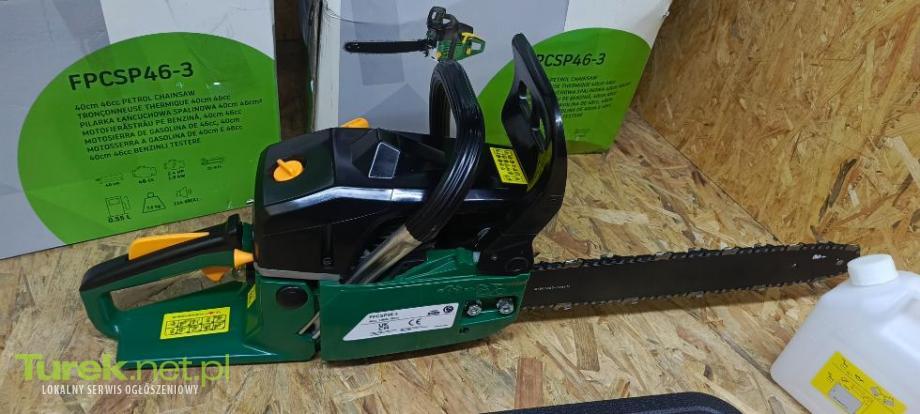 Przedmiotem sprzedaży jest powystawowa pilarka spalinowa FPCSP46-3. Specyfikacja techniczna Typ produktu: Pilarka łańcuchowa Długość produktu: 780mm Długość prowadnicy pilarki łańcuchowej: 460mm Sposób chłodzenia silnika: Chłodzenie powietrzem Typ korby: Pełna Typ łańcucha do pilarki łańcuchowej: Full-complement Typ paliwa: Benzyna Typ silnika: Jednocylindrowy Typ uchwytu: Ergonomiczny Typ zasilania: Spalinowe Cykl pracy: 2-suwowy Funkcja anti-kickback: Standardowy odrzut Łatwe uruchamianie: Tak Liczba cylindrów: 1 Pojemność silnika: 46cc Moc: 1,8kW