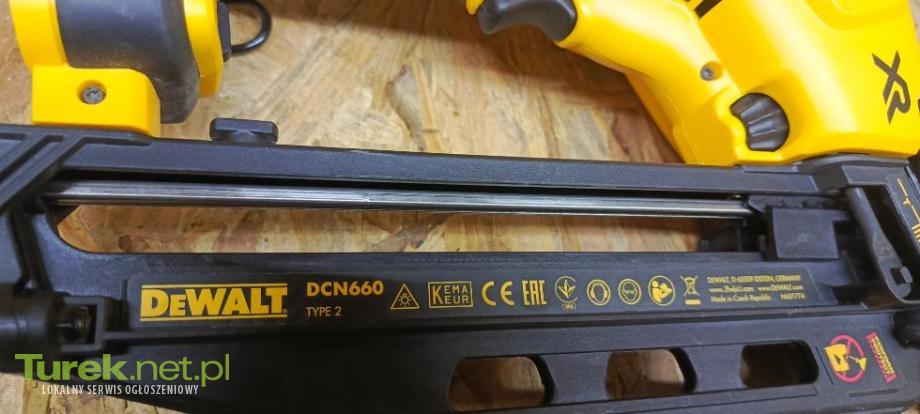 Przedmiotem sprzedaży jest powystawowa gwoździarka DeWalt dcn660 DANE TECHNICZNE: Marka: DEWALT Model: DCN660 Typ: Gwoździarka wykończeniowa/Sztyfciarka (Finish Nailer) Napięcie akumulatora: 18 V XR Li-Ion Silnik: Bezszczotkowy Średnica gwoździa: 1,6 mm (16 Ga) Długość gwoździ: 32 - 63 mm Kąt pochylenia magazynka: 20 stopni Pojemność magazynka: 110 gwoździ Tryby pracy: Pojedynczy i Sekwencyjny
