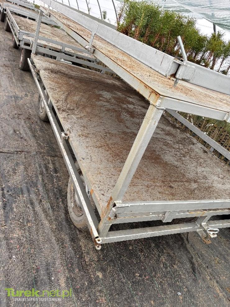 Wózek szkółkarski platforma wymiary 300cm x 150cm o obydwu skrętnych osiach, możliwy transport za dodatkową opłatą Mam dostępnych 6szt pojedynczych 2 szt podwójne wózki pojedyncze w ocynku