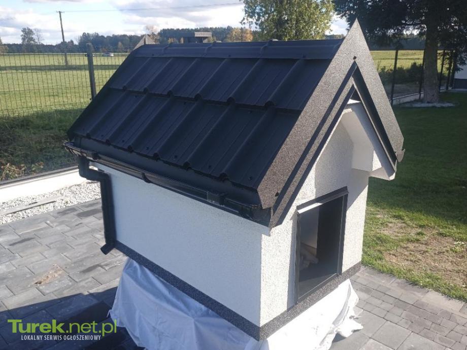 Witam. Sprzedam wyjątkowa budę dla psa. Buda wzorowana jest na nowoczesnym stylu budownictwa domów i ich trendów zrobiona z wysokiej jakości materiałów. Wymiary budy: Zewnętrzne Wysokość 133 szerokość 125 długość 130 Wewnętrzne Wysokość 90 szerokość 63 długość 100 Otwór wejściowy szerokość 34 wysokość 43 Konstrukcja budy z kantówki drewnianej Obicie płyta osb Całość poskręcana na wkręty ciesielskie i kątowniki metalowe Podłoga posiada nóżki plastikowe a także jest ocieplona styropianem podłogowym 5cm (styropian swissporn 036) Ściany docieplone styropianem podłogowym 5cm(swissporn 036) Podbitka dachowa styropianowa najnowszy design elewacji.(Styropian 4cm) Docieplenie: klej z siatką ,klej,podkład gruntujący,tynk ozodbny Elewacja zrobiona w kolorze białym Położony tynk silikonowy Cokół : tynk mozaikowy Wejście budy obrobione obróbka blacharska(PurMax kolor czarny Pruszyński) Dach: membrana,kontrłata,deska calowa,obróbki blacharskie blachodachówka rynna Blachodachówka FIORD Blachy Pruszyński w kolorze czarnym powłoka Topmat Obróbki blacharskie blachy Pruszyński Topmat czerń Rynna dachowa 75 bryza (cell fast) czerń Środek budy obłożony płyta MDF 0,4 w kolorze białym Zamontowano lampy solarne aby podświetlały całość elewacji. Całość zrobiona zgodnie ze sztuką budowlaną i z bardzo dobrych materiałów jest to indywidualny projekt robiony w całości przeze mnie .Buda prezentuje się na żywo znakomicie jeśli chcesz się wyróżnić i mieć coś indywidualnego zapraszam do kontaktu i zakupu. Pozdrawiam i polecam.