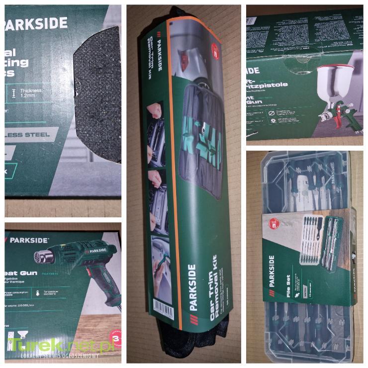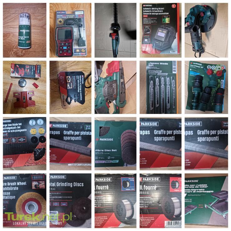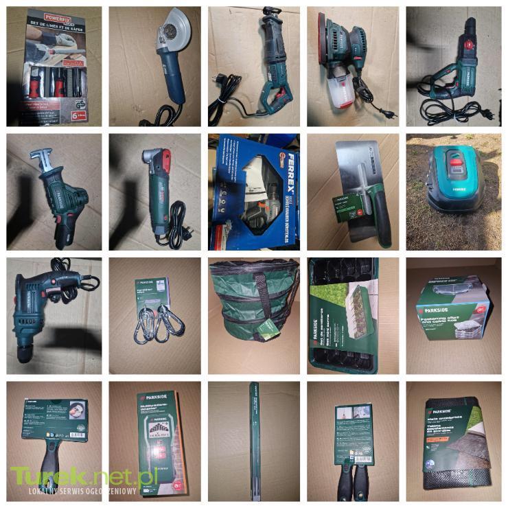 Sprzedam narzędzia tak jak na zdjęciu parkside i ferrex do negocjacji 1.Wiertarka 1050W 140 ZŁ 2.Wiertarka 750W 100 ZŁ 3.Szlifierka taśmowa 140 ZŁ 4.Narzędzie wielofunkcyjne Bosh 180 ZŁ 5.Karabińczyk 200kg 25ZŁ 6.Lis 12V 90 ZŁ 7.Tester diagnostyczny 250 ZŁ 8.Nożyce do żywopłotu 12V 130 ZŁ 9.Poziomnica na słupek 20ZŁ 10.Karabińczyk 250kg 25ZŁ 11.Pilniki 50 ZŁ 12.Szlifierka mimonosna 100 ZŁ 13.Lis 230V uszkodzony 50 ZŁ 14.Szlifierka do ścian 200 ZŁ 15.Maska do spawania 100 ZŁ 16.Kosiarka samojezdna FERREX bez baterii 300 ZŁ z baterią 500 ZŁ 17.Wkrętarka ferrex 180 ZŁ 18.Szablon do frezarki 20 ZŁ 19.Szlifierka Bosh z systemem zamykania tarczy x-clock 400 ZŁ 20.Tarcze do szlifowania 76mm 10 ZŁ 21.Brzeszczoty 10 ZŁ 22.Drut spawalniczy 0.8mm 35 ZŁ 23.Drut spawalniczy 0.6mm 35 ZŁ 24.Złączki do wody 15 ZŁ 25.Tarcze widia 89mm 50 ZŁ 26.Wszywki 5000x 30 ZŁ 27.Wszywki 4000x 30 ZŁ 28.Wszywki 4500x 30 ZŁ 29.Filce 10 ZŁ 30.Paca 20 ZŁ 31.Szczotka do szlifierki 30 ZŁ 32.Sznurek 50m 2mm 10ZŁ 33.Taśma izolacyjna 12ZŁ mozliwa większa ilość 34.Worek ogrodowy 85l 24ZŁ 35.Wózki do leżenia 120ZŁ 36.Siatka agro wyklina 3x2m 37.Opalarka 80ZŁ 38.Pistolet do malowania 60ZŁ 39.Zestaw do ściągania tapicerki samochodowej 30ZŁ 40.Tkanina podkładowa 3szt 41.Szpatułki do farby 40ZŁ 42.Magnesy 30ZŁ mozliwa wieksza ilość 43.Szpachelka polokragla 60ZŁ 44.Detektor 120ZŁ 45.Pilniki 50ZŁ 46.Korki do samochodu plastikowa 40ZŁ 47.Skrzynki do uprawy roślin 30ZŁ 48.Wiertła do metalu 15ZŁ 49.Wiertła do betonu 25ZŁ 50.Wiertła do drewna 25ZŁ 51.Pistolet do silikonu 30ZŁ 52.Tarcza do cięcia 76mm 25ZŁ 53.Karabińczyk 80kg 25ZŁ 54.Karabińczyk 50kg 25ZŁ 55.Karabińczyk 150kg 25ZŁ
