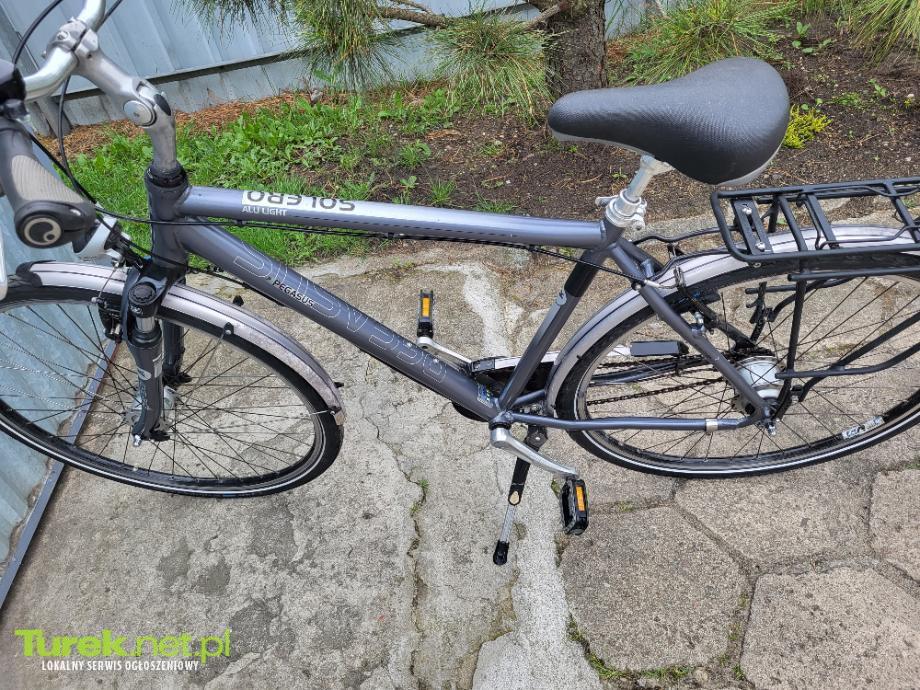 Sprzedam rower Trekkingowy Pegasus Solero, koła 28, rama aluminiowa, osprzęt Shimano Nexus 8, amortyzowany przód oraz siedzenie, oświetlenie z przedniej piasty, stożkowe wzmocnione koła, opony stan bardzo dobry.