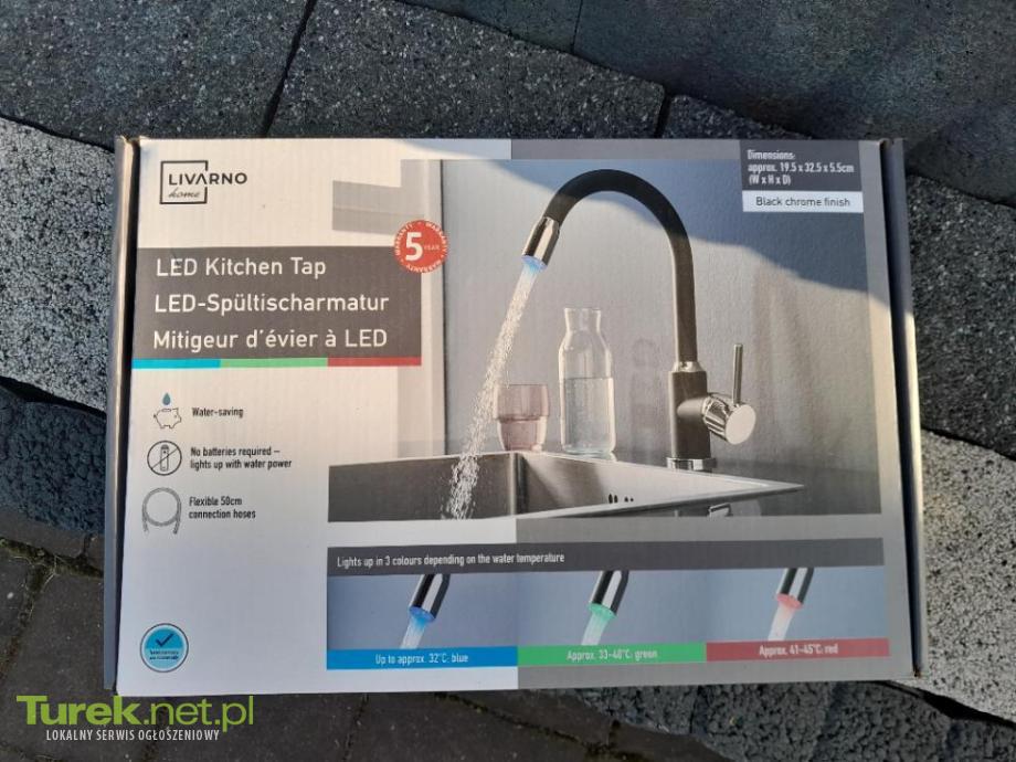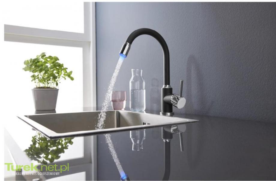 Mieszacz jednouchwytowy, wylewka obracająca się o 360° w zależności od temperatury wody świeci się w 3 kolorach, funkcja zmiany koloru: