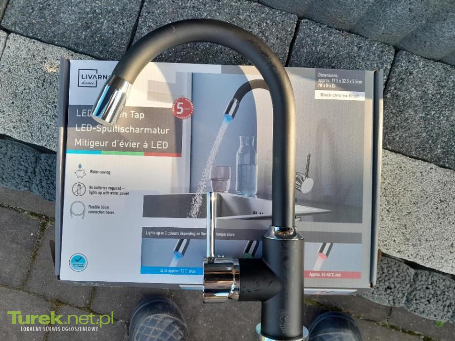 Bateria kuchenna, umywalkowa LED, 360° obrotowa. Kolor czarny