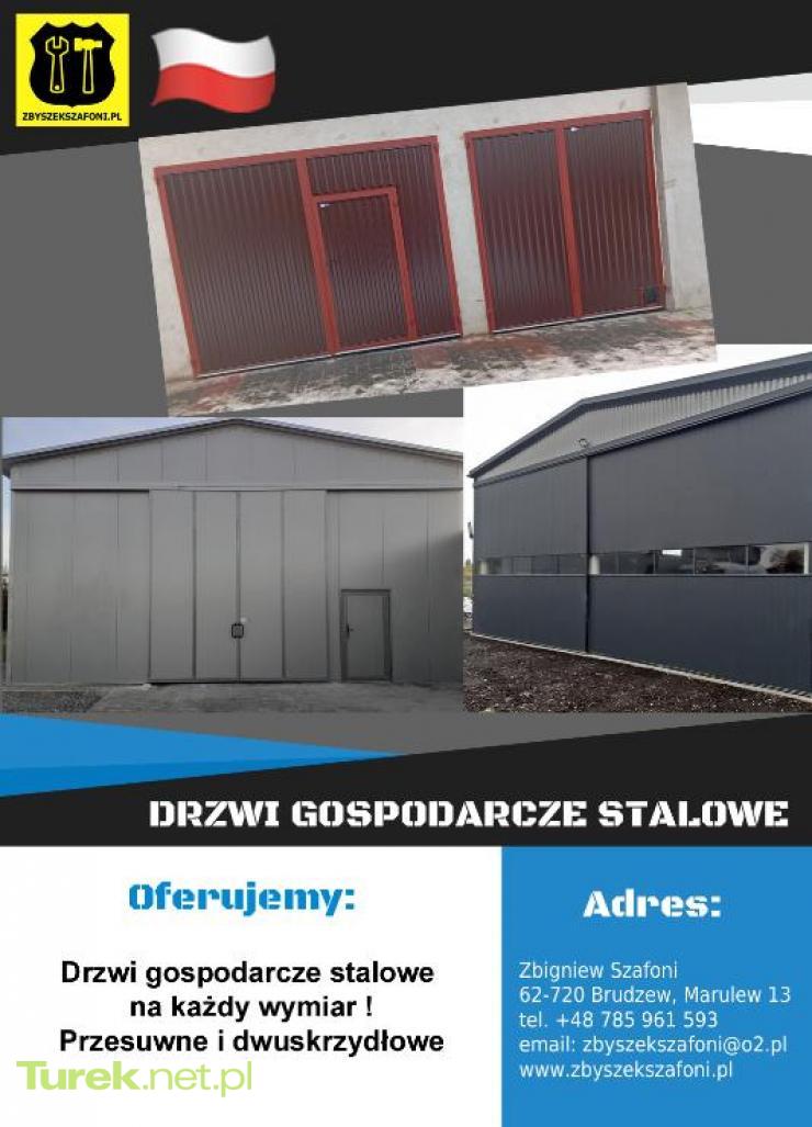 Drzwi gospodarcze stalowe na każdy wymiar. Przesuwne i dwuskrzydłowe. Solidna konstrukcja i wysokiej jakości materiały zapewniają długotrwałe użytkowanie. Idealne do zastosowania w garażach, magazynach i innych obiektach gospodarczych. Cena do uzgodnienia
