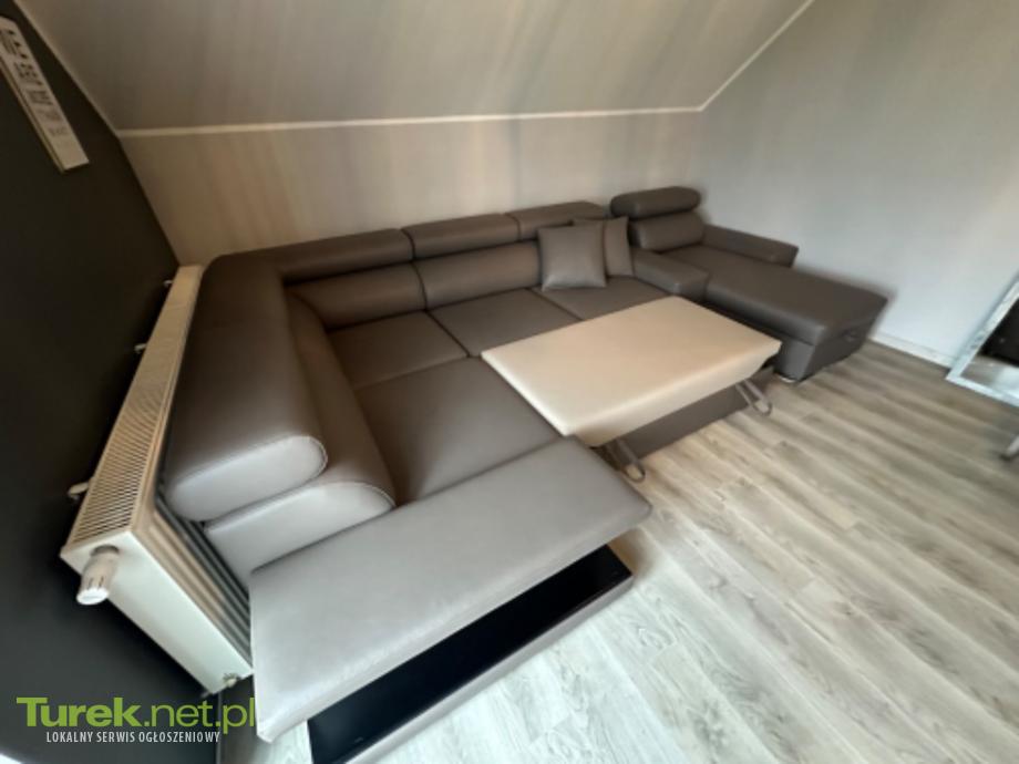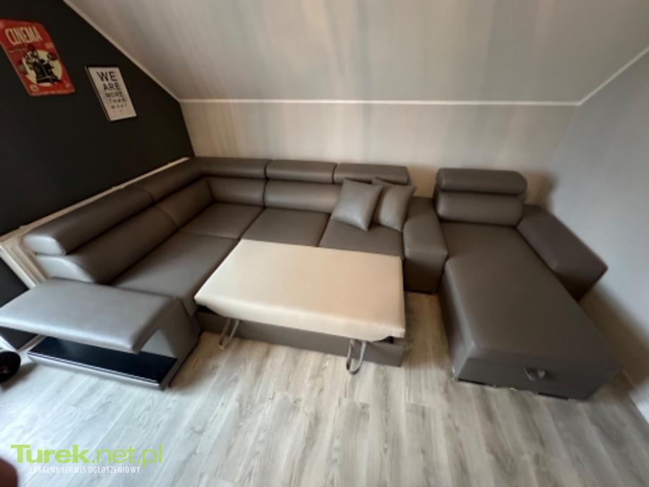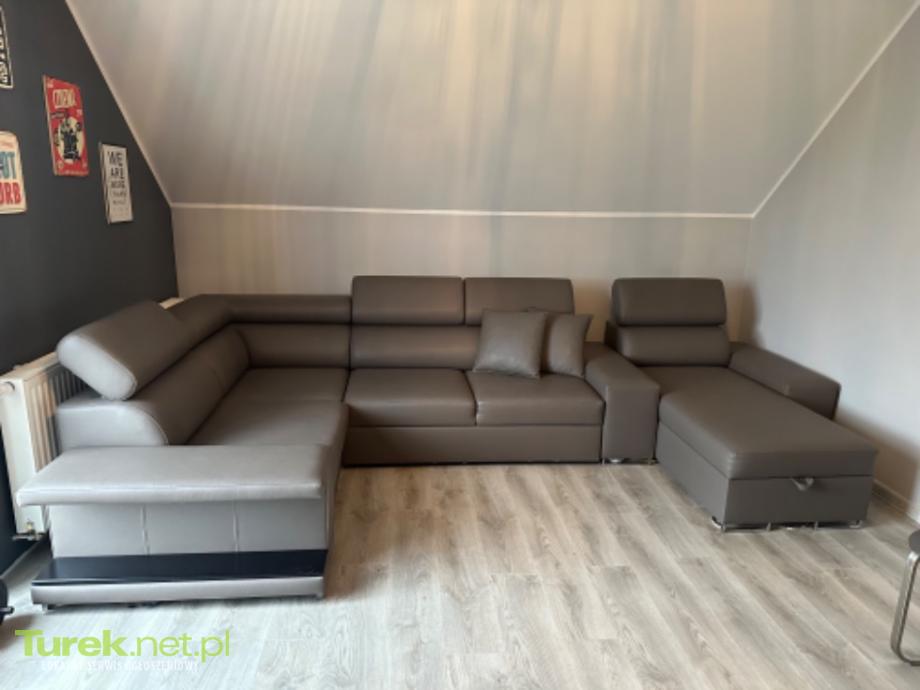 SPRZEDAM ELEGANCKI NAROŻNIK U – JAK NOWY, STAN IDEALNY Na sprzedaż nowoczesny, bardzo wygodny narożnik w kształcie litery U, wykonany z wysokiej jakości ekoskóry w eleganckim, uniwersalnym kolorze szaro-grafitowym. Narożnik jest rozkladany, posiada funkcję spania, pojemnik na pościel, regulowane zagłówki oraz chromowane nóżki, które dodają mu nowoczesnego, luksusowego charakteru • kształt U – bardzo duży i komfortowy • funkcja spania – powierzchnia ok. 120 cm • pojemnik na pościel / schowek • regulowane zagłówki • chromowane, stabilne nóżki • miękka, przyjemna w dotyku ekoskóra • solidna konstrukcja, bardzo wygodny Wymiary: • bok: 2,15 m • najdłuższy bok (środek): 3,70 m • leżanka: 170 cm Cena 2800 do negocjacji Odbiór osobisty Tel: 669 503 510