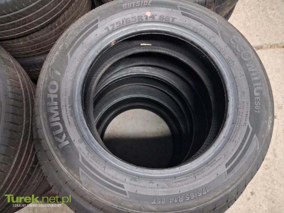 Nowe opony Kumho 175/65/14 rocznik 2023. Cena 550zł/komplet 4szt. Sprzedam komplet opon letnich firmy Kumho w rozmiarze 175/65/14. Rocznik 2023. Opony zdemontowane z nowego auta. Bieżnik jak w nowej oponie. Widoczne markery. Kontakt 725444570.