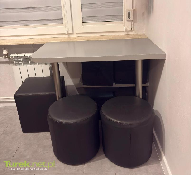 • Dodatkowo: stolik / barek + 3 czarne pufy (widoczne na zdjęciu)