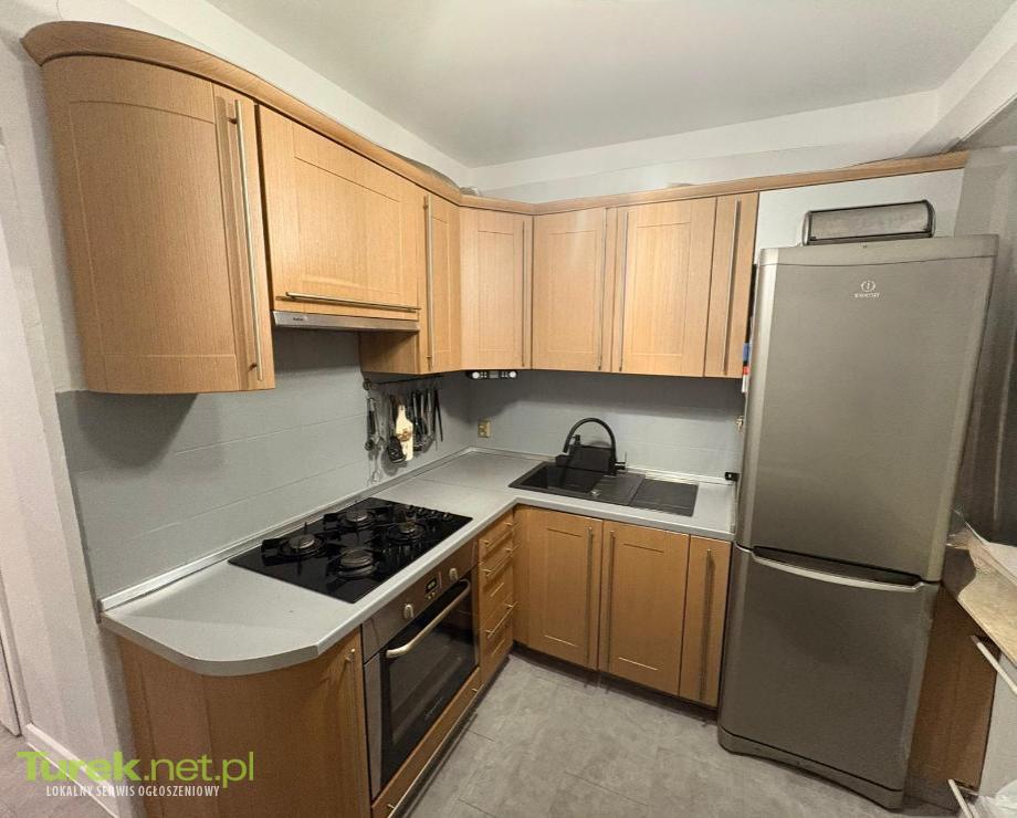 Sprzedam kompletny zestaw mebli kuchennych w kształcie litery L, wraz ze sprzętem AGD i dodatkowym stolikiem widocznym na zdjęciach. Kuchnia zadbana, funkcjonalna, gotowa do dalszego użytkowania.