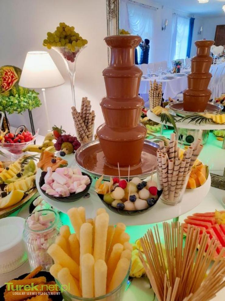 stół owocowy, fontanna czekolady