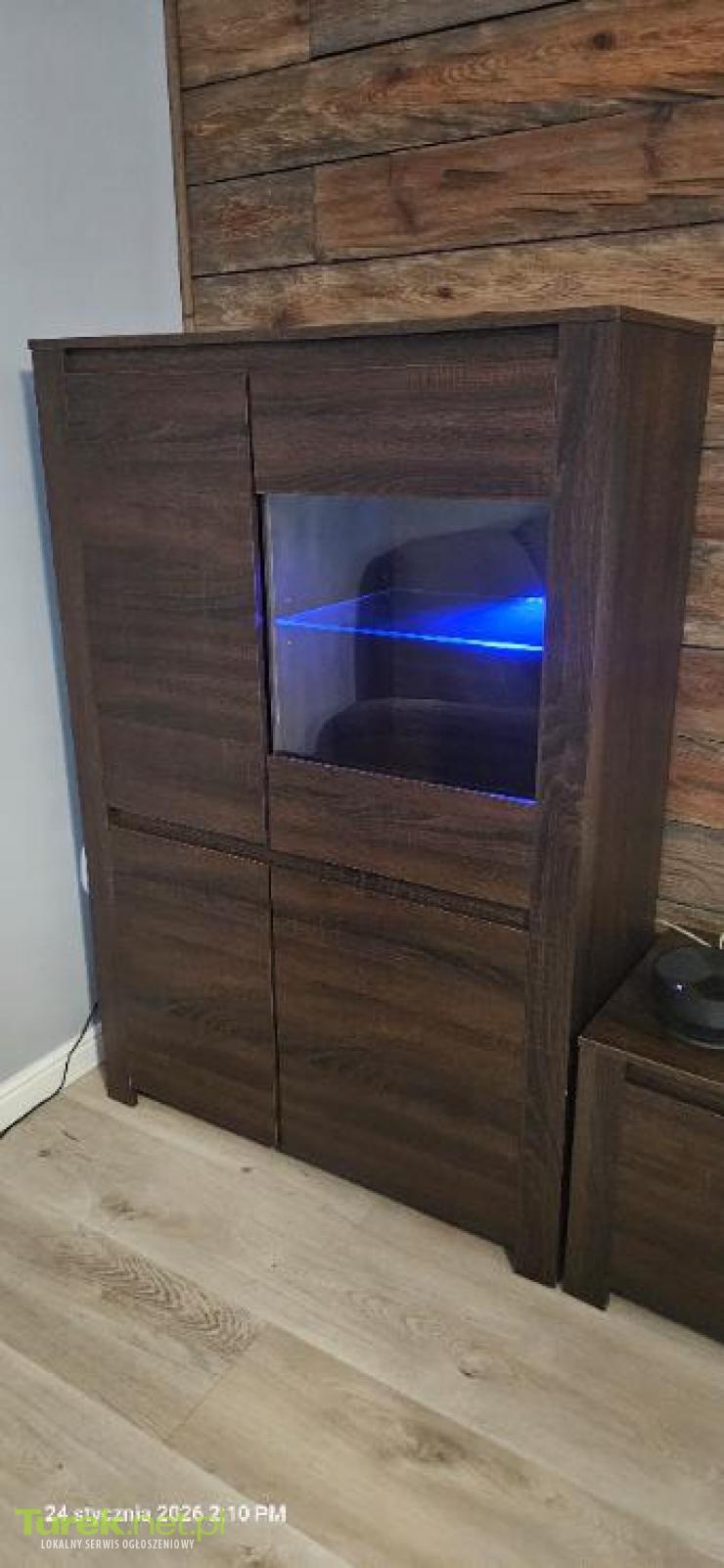 Sprzedam witrynę podświetlaną, szafkę pod telewizor oraz ławę ( małe uszkodzenia widoczne na zdjęciu), cena za komplet 350 zł