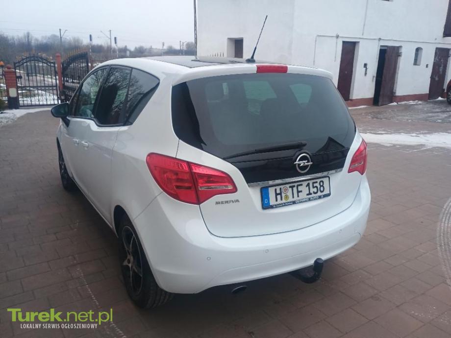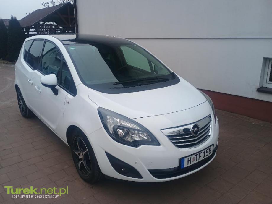 Sprzedam Opel Meriva 2012 rok 1.4 benzyna 140 KM, przebieg tylko 108 tys. km (jego autentyczność potwierdzam wpisem na fakturze), sprowadzona z Niemiec, po opłatach skarbowo-celnych, przeglądzie. Manualna 6-stopniowa skrzynia biegów. Bogate wyposażenie: ABS, ESP, aluminiowe felgi 16-calowe, kontrola trakcji, wspomaganie kierownicy, centralny zamek, 8x air bag, 4x elektryczne szyby, czujniki cofania tył + przód, elektryczne i podgrzewane lusterka, halogeny, LED, radio CD + AUX + MP3, komputer pokładowy, tempomat, klimatyzacja automatyczna, podgrzewana przednia szyba, podgrzewane fotele, skórzana + podgrzewana + wielofunkcyjna kierownica, sensor deszczu i zmierzchu, książka serwisowa. Kupujący zwolniony z opłaty skarbowej. Cena 23.900 PLN do uzgodnienia. Tel. 724 356 489.