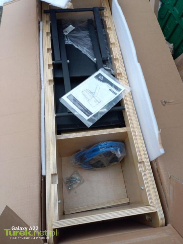 Nowa drewniana ławka treningowa z miejscem na hantle
